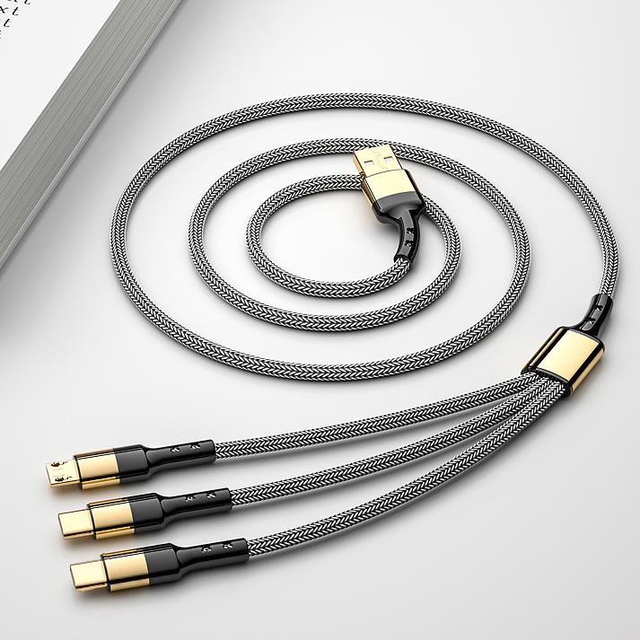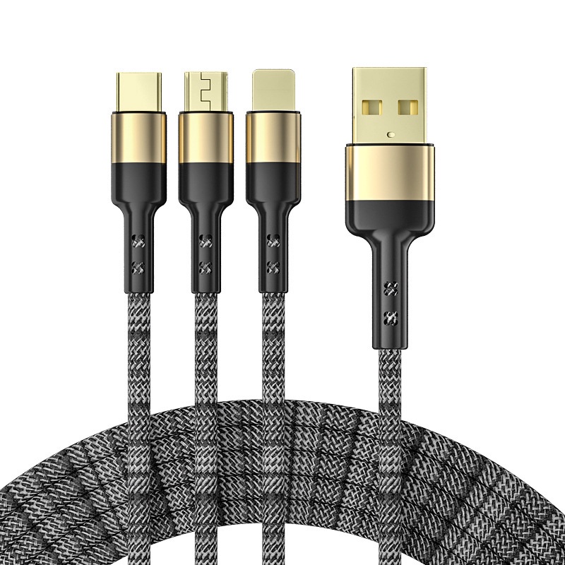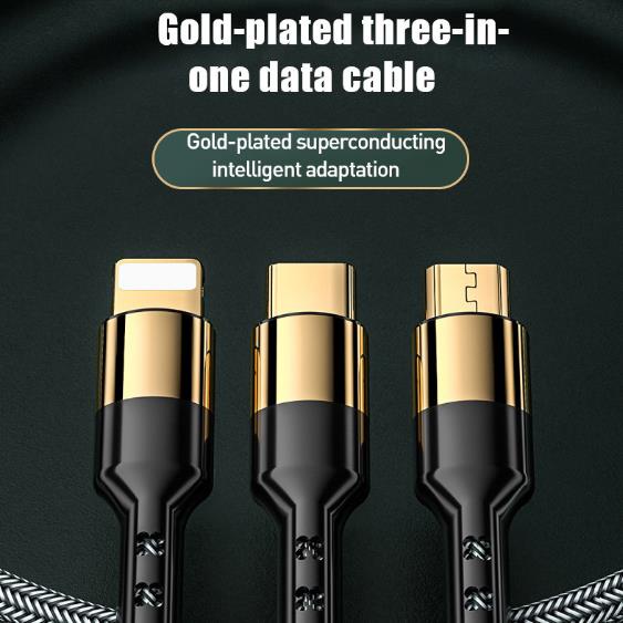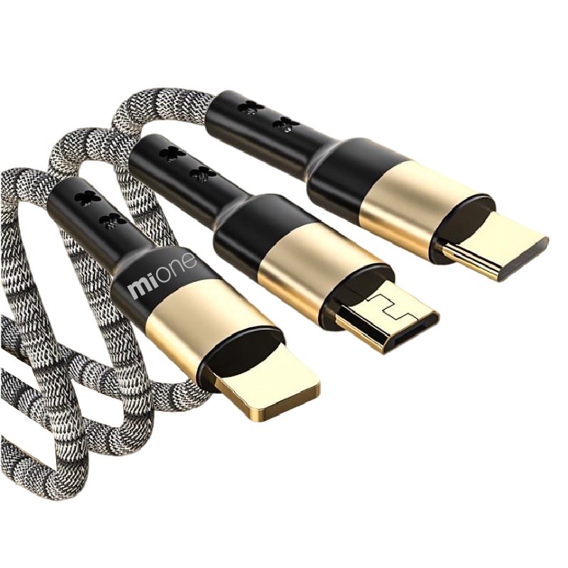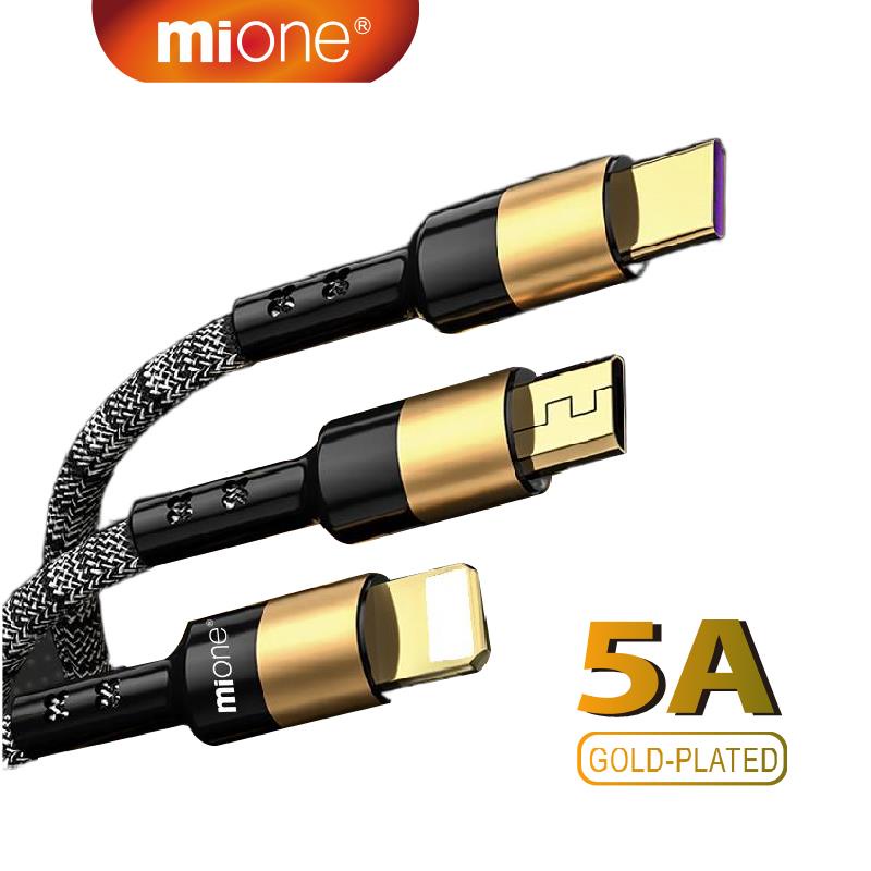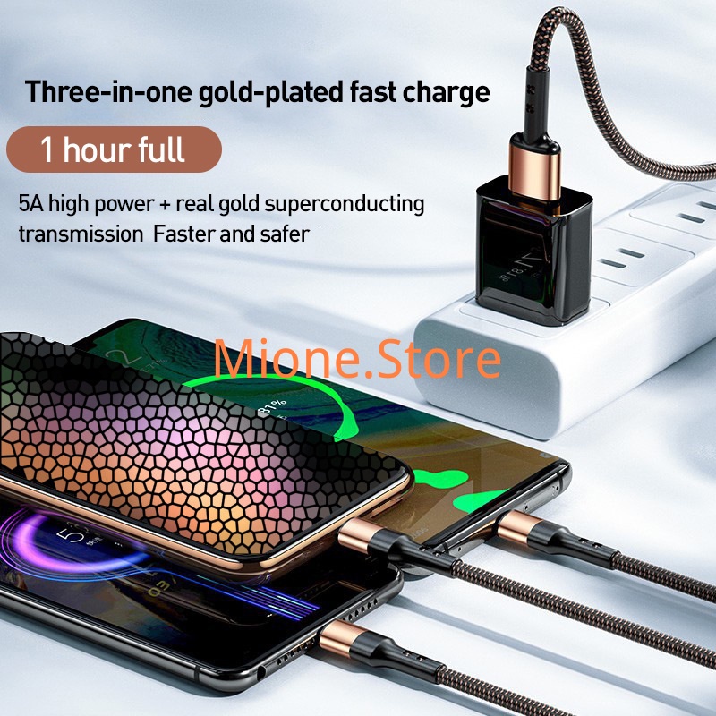 Mione 5A Golden Plating Fast Charging Cable 3 in 1 Cable Charger Type C Micro USB Android Phone Charger Cable