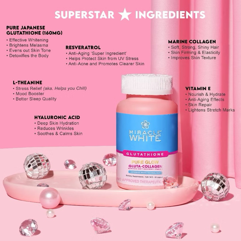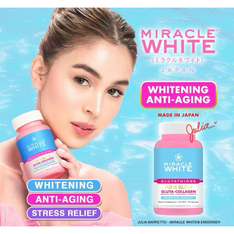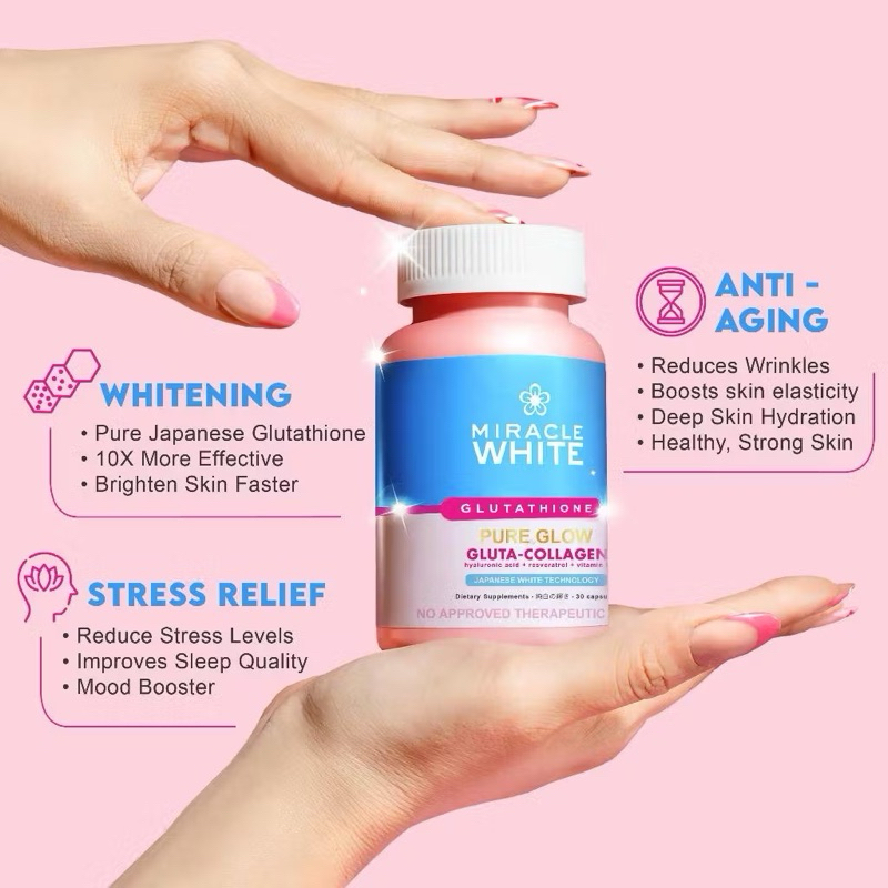 Miracle White Pure Glow Gluta-Collagen Whitening +Anti Aging Supplements Made in Japan