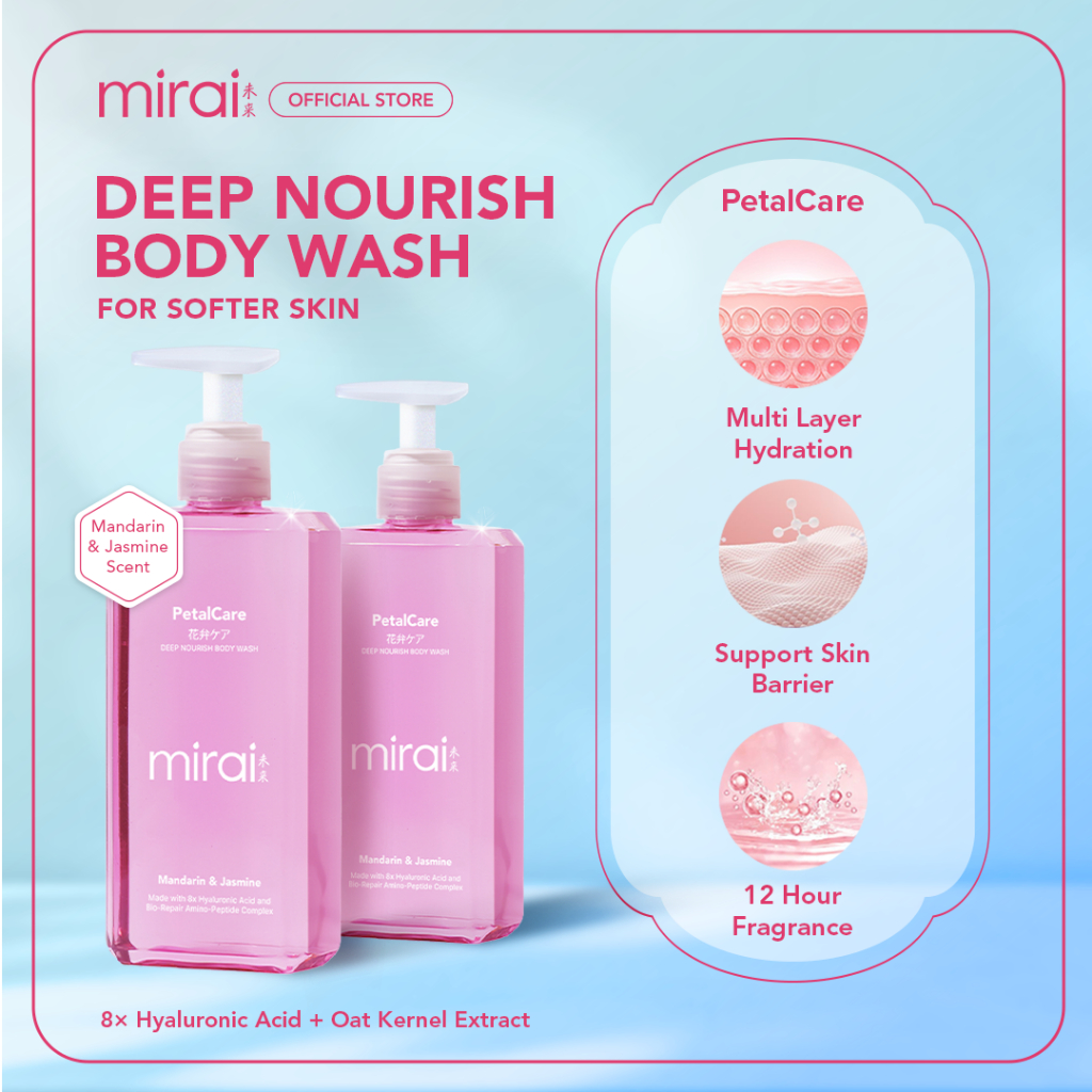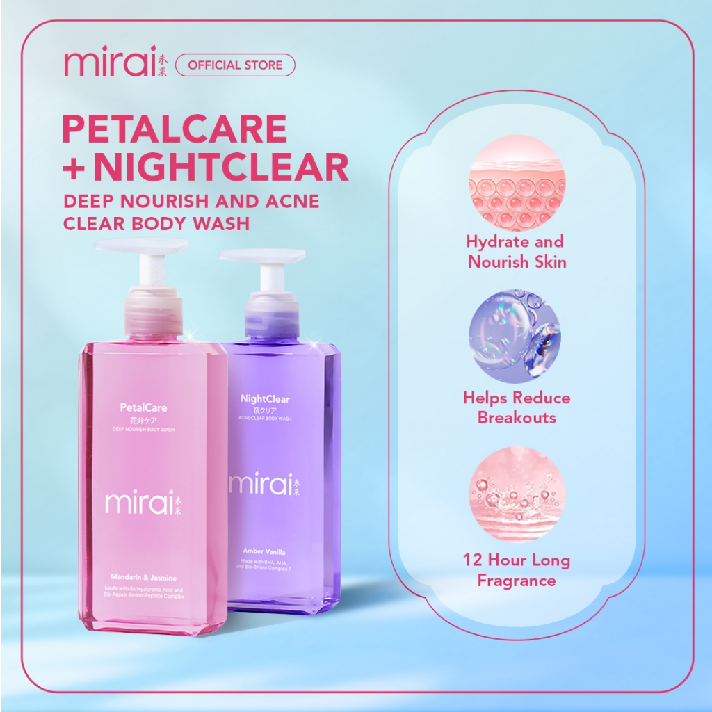 Mirai Body Wash Duo Bundle BrightPearl NightClear PetalCare Niacinamide Hyaluronic Acid Skin Repair