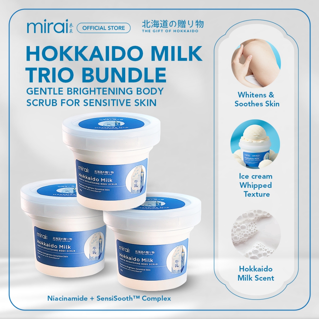 Mirai Hokkaido Trio Milk Gentle Brightening Body Scrub Niacinamide Oat Kernel Extract Whitening