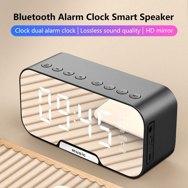 Mirror clock Bluetooth speaker mini mirror clock alarm clock small stereo mobile phone holder