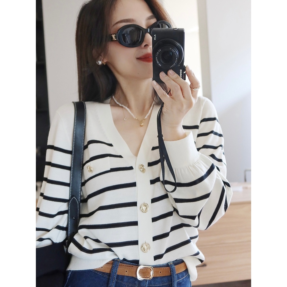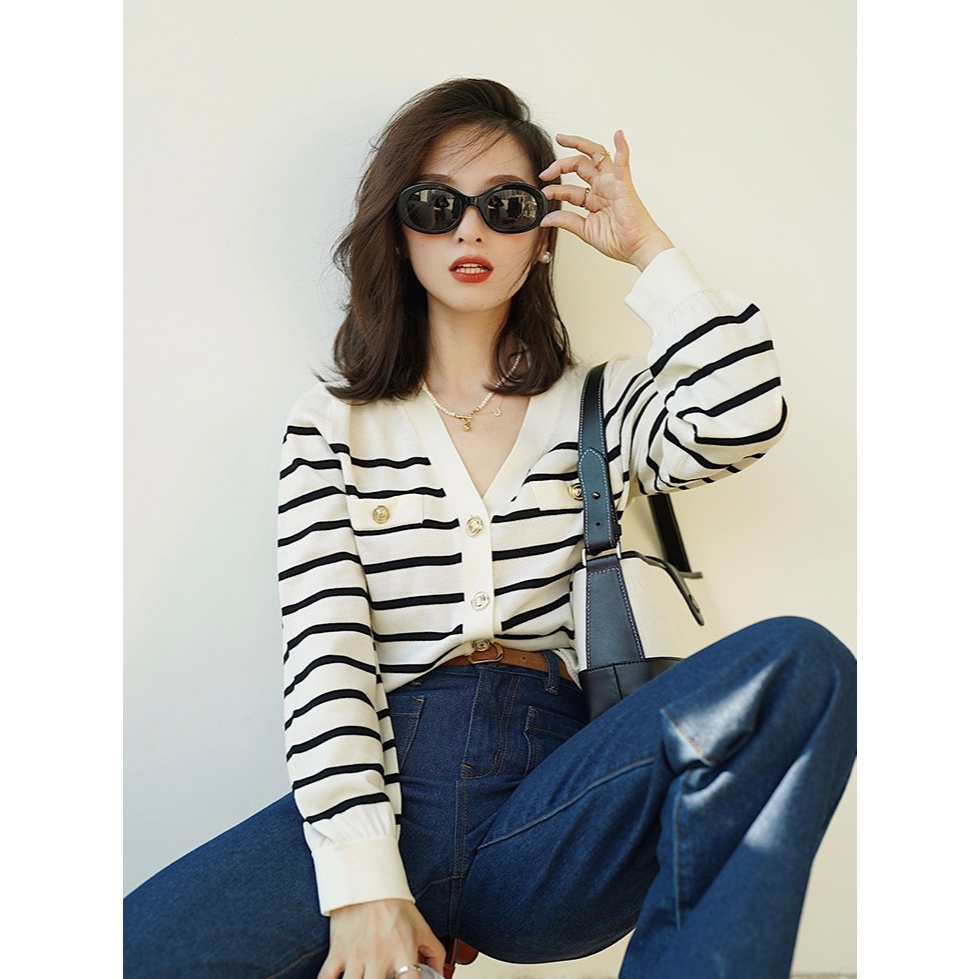 Miss M Non-working Pocket Button Down Stripe Knitted Cardigan Top M1384