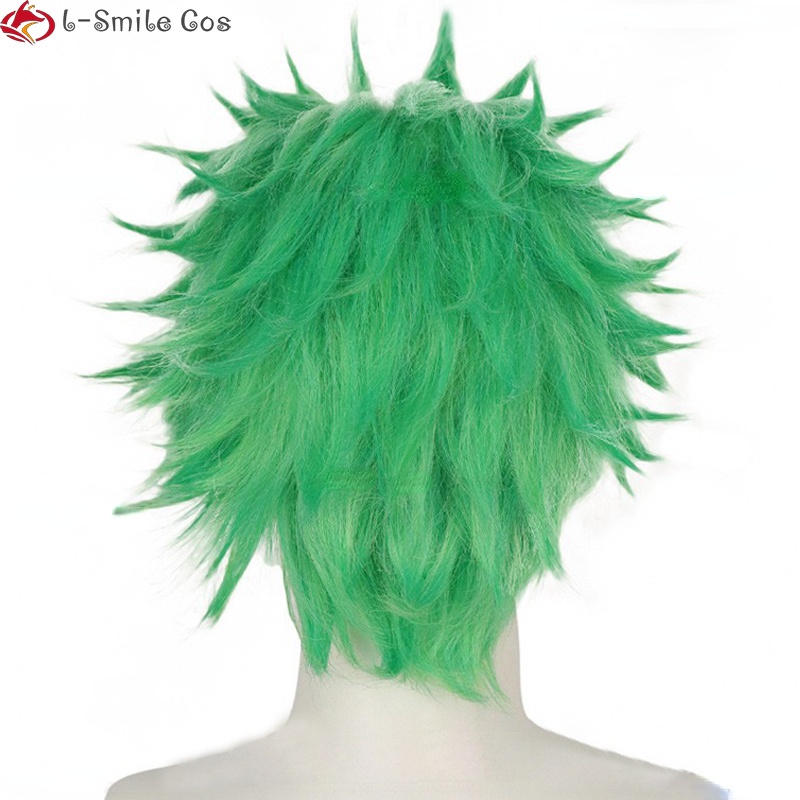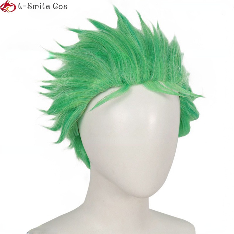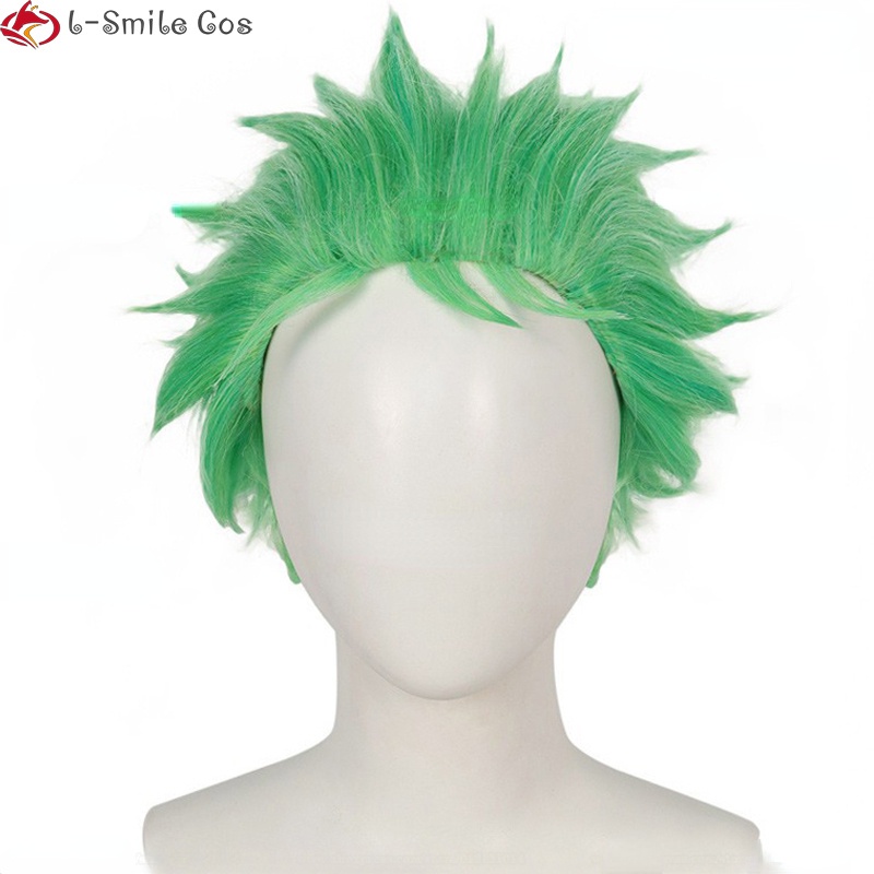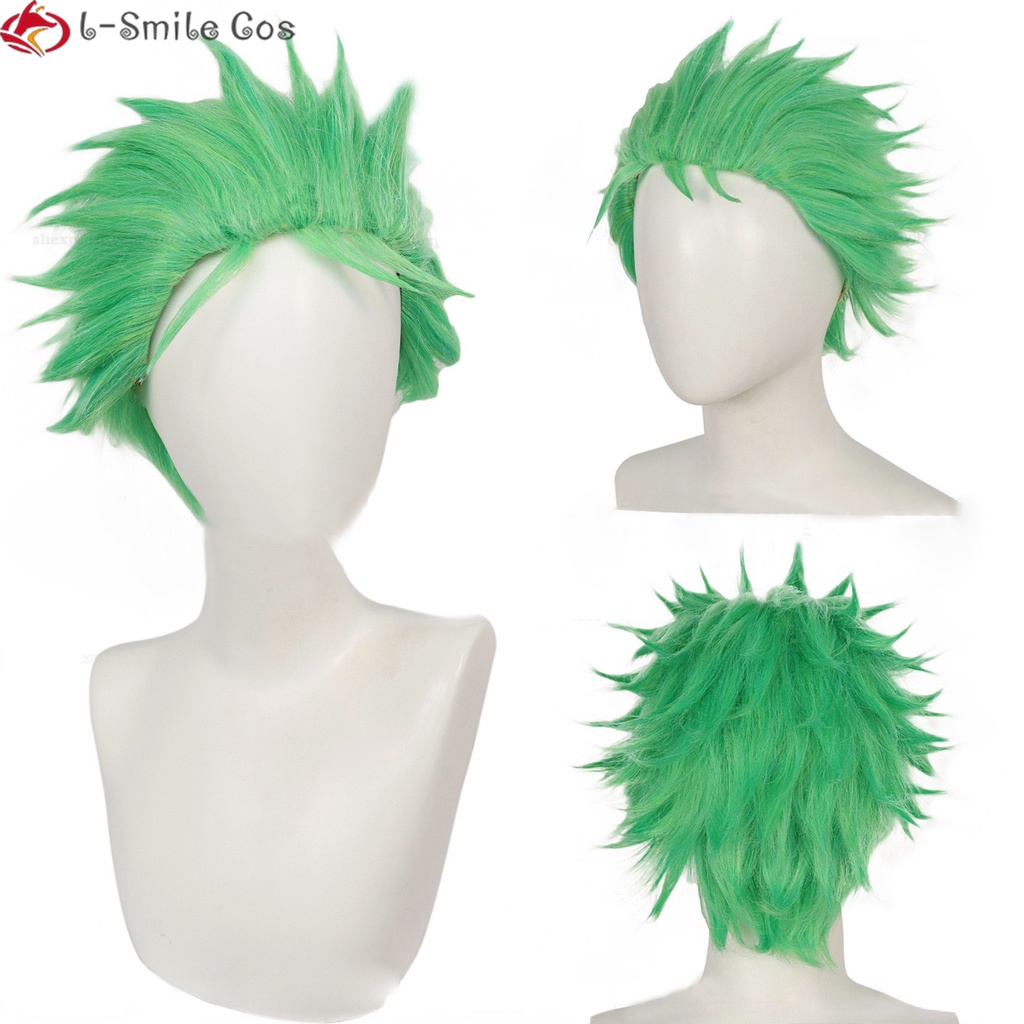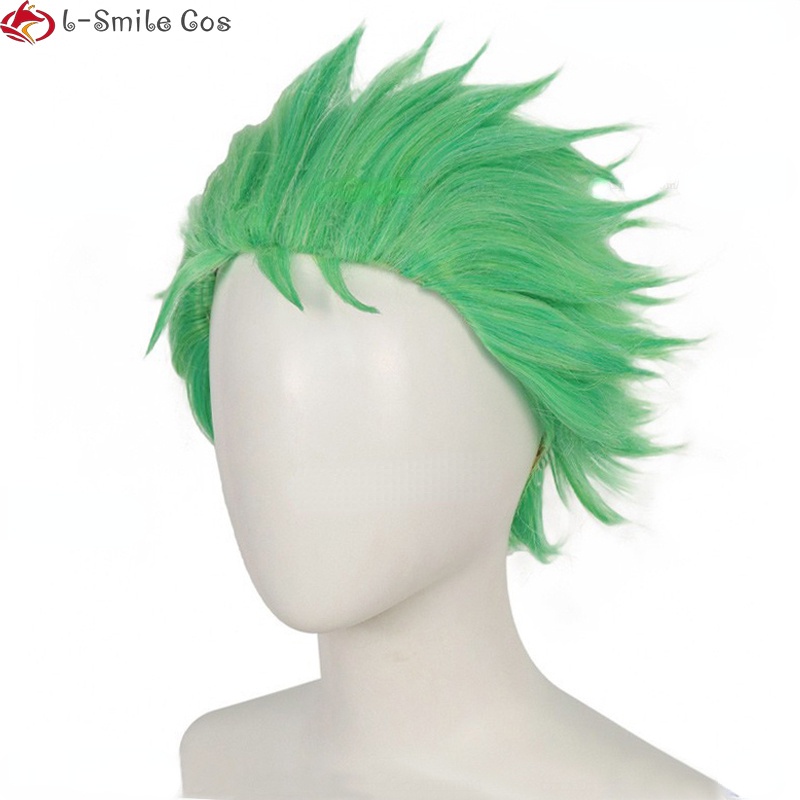 Misscoo Anime One Piece Roronoa Zoro Cosplay Wig Short Green Roronoa Zoro Wig Heat Resistant Hair