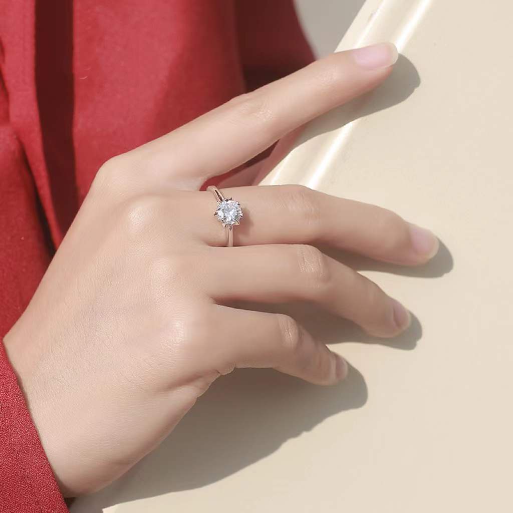 Missu 925 Silver Diamond Snowflake Promise Ring for Women Adjustable Wedding Ring Cubic Zircon RS017