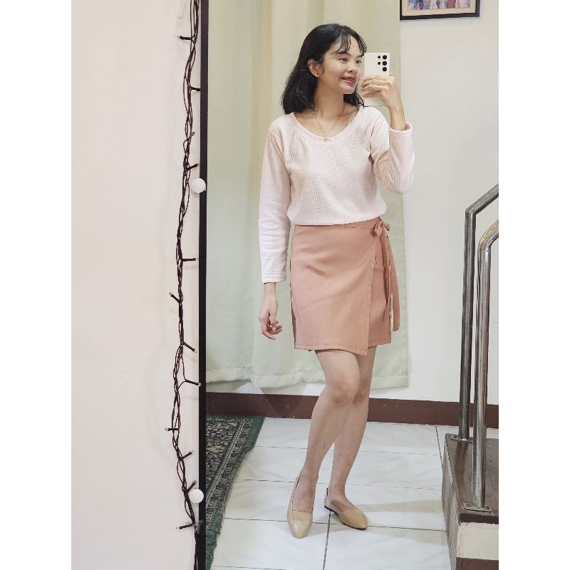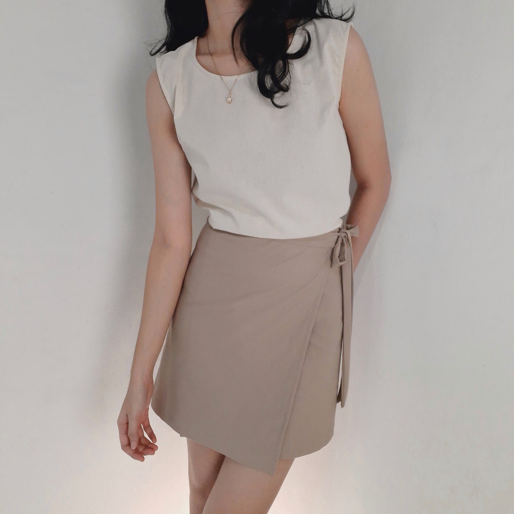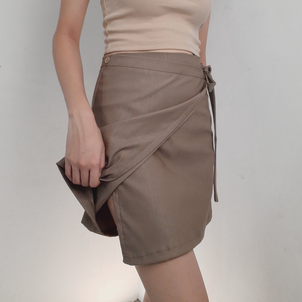 Missym Wrap Skirt A-line Mini Korean Skirt with Tie Adjustable Sexy Cute Minimalist Trendy Cotton