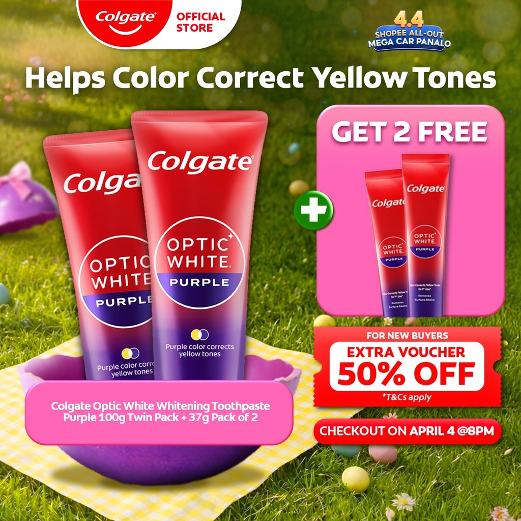 [BUY 2, FREE 2] Colgate Optic White Whitening Toothpaste Purple, 100g x2 + 37g x2