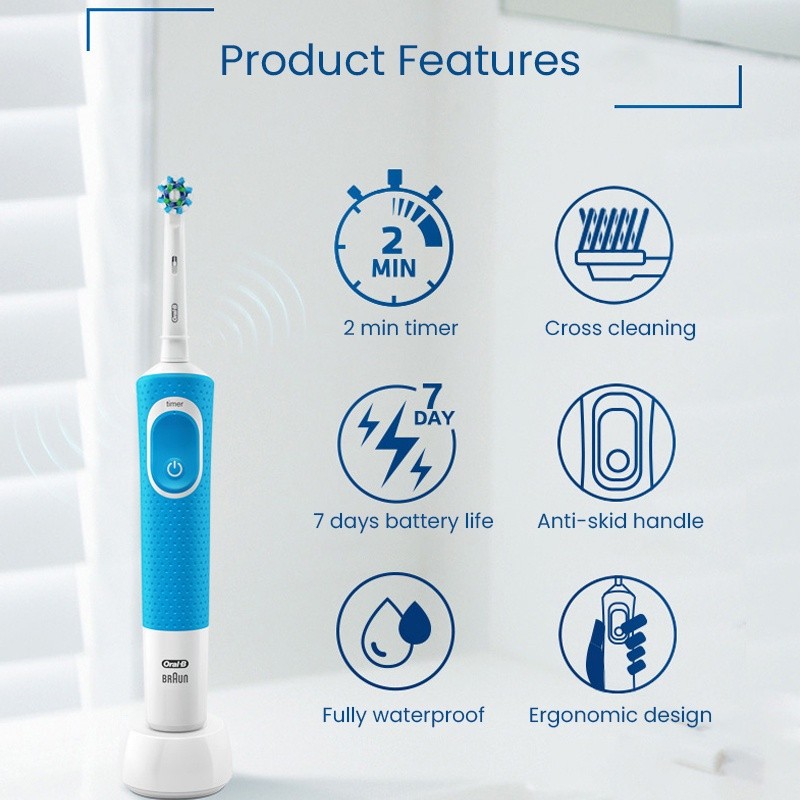 Oral B D100 Electric Toothbrush 2D Vitality Cleaning Teeth Brush Waterproof Electronic Teeth Brush