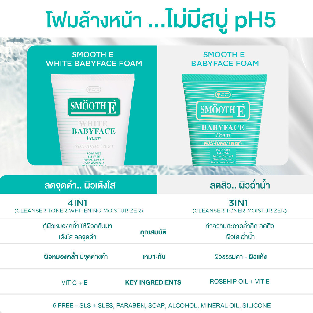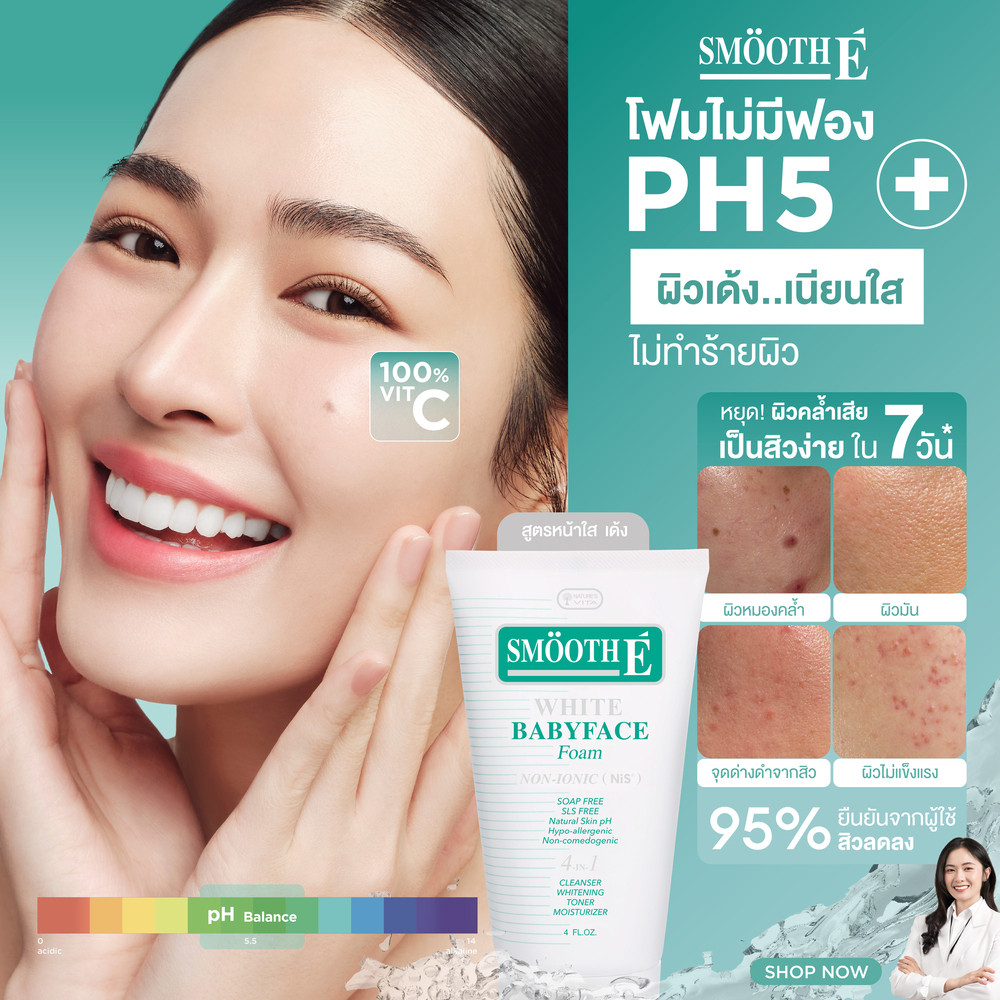 Smooth E White Babyface Foam 1 Oz. Baby Face pH5 Vit C&E Brightening Skin For Dull