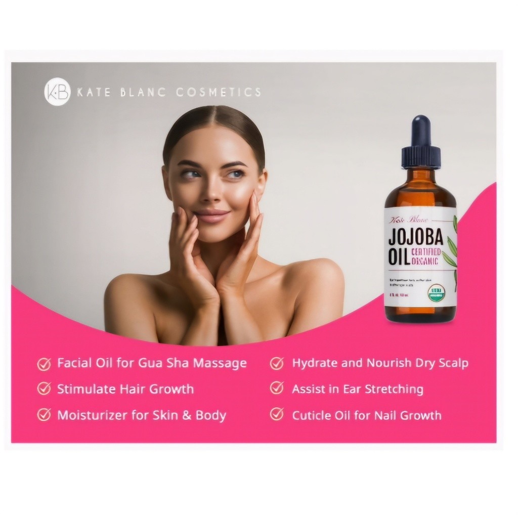 Kate Blanc Cosmetics Jojoba Oil, (60ml, Organic, 100% Pure, Natural)