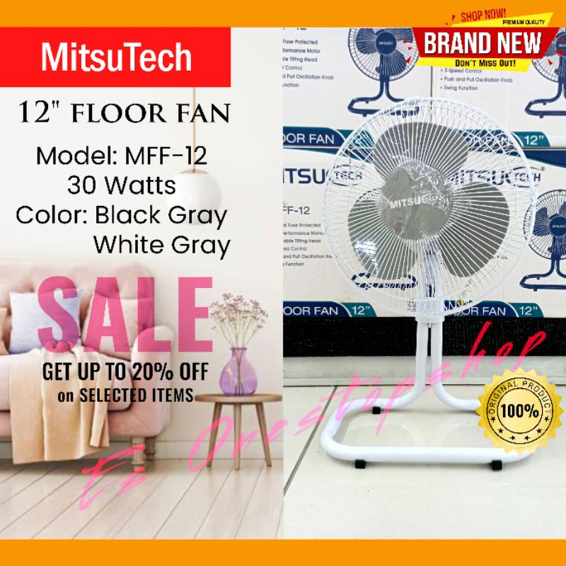 Mitsu Tech Desk / Floor fan 12" Black, Gray, Blue Brandnew