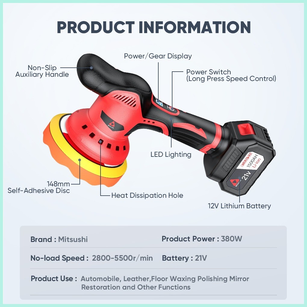 Mitsubishi Cordless Car Buffer Polishing Machine 12V Rechargeable Lithium Batteries
