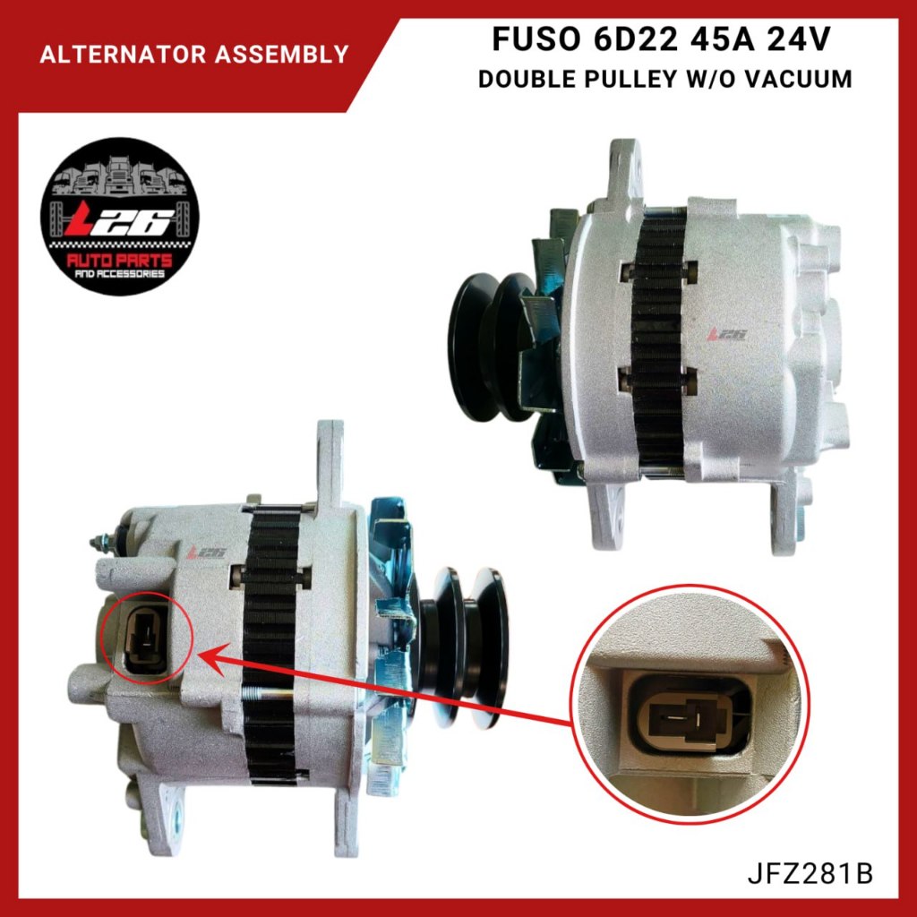 Mitsubishi Fuso 6D22 Alternator Assembly 45AMP 24v Double Pulley without Vacuum JFZ281B CST