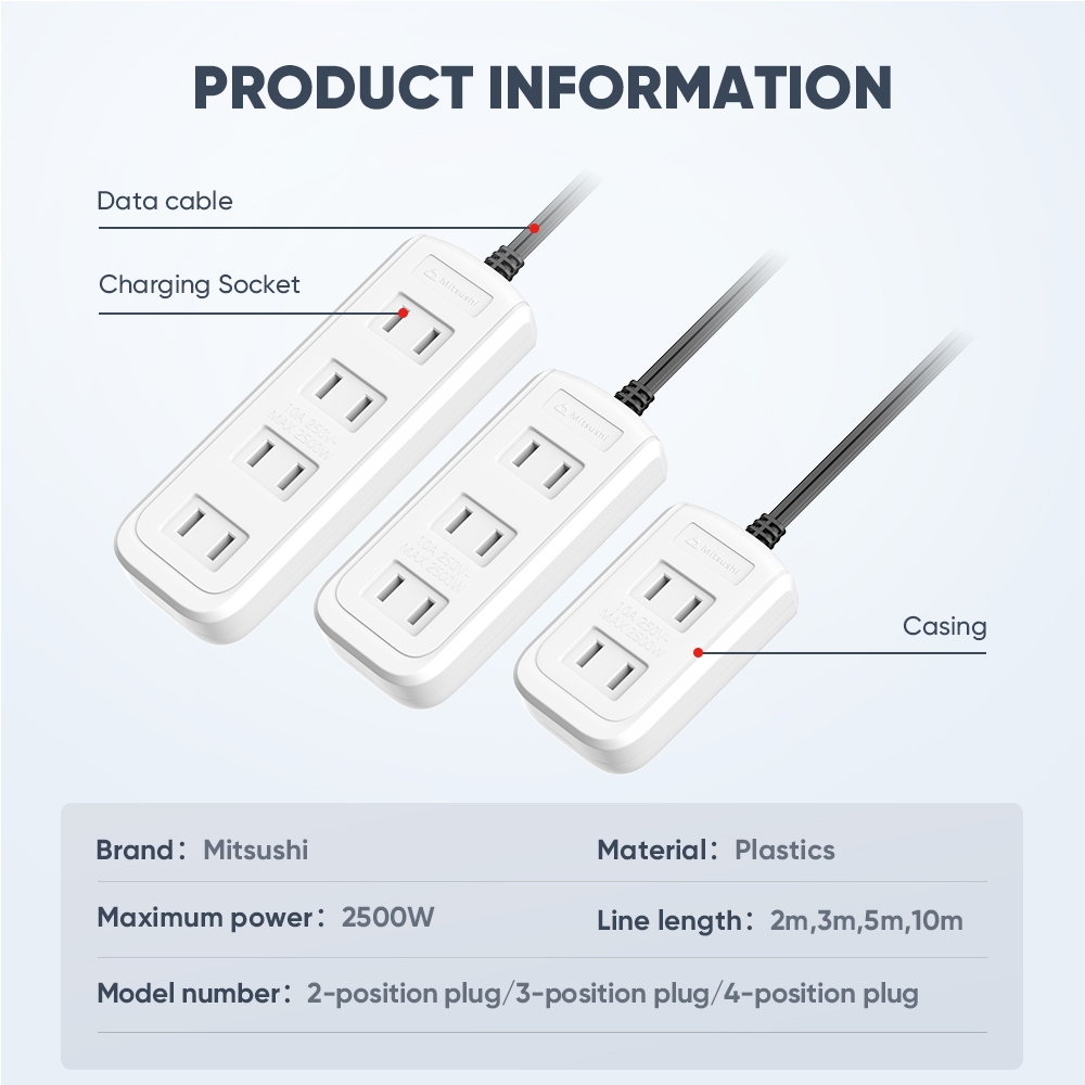 Mitsushi (2500w/10A)power board surge protector extension cable suitable for home, school and office
