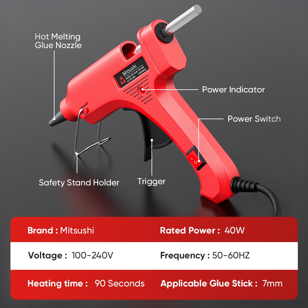 Mitsushi 40W/60W Original Glue Gun MJQ40 Hot Melt Glue Gun With Glue Sticks Heavy Duty Hot Glue Gun