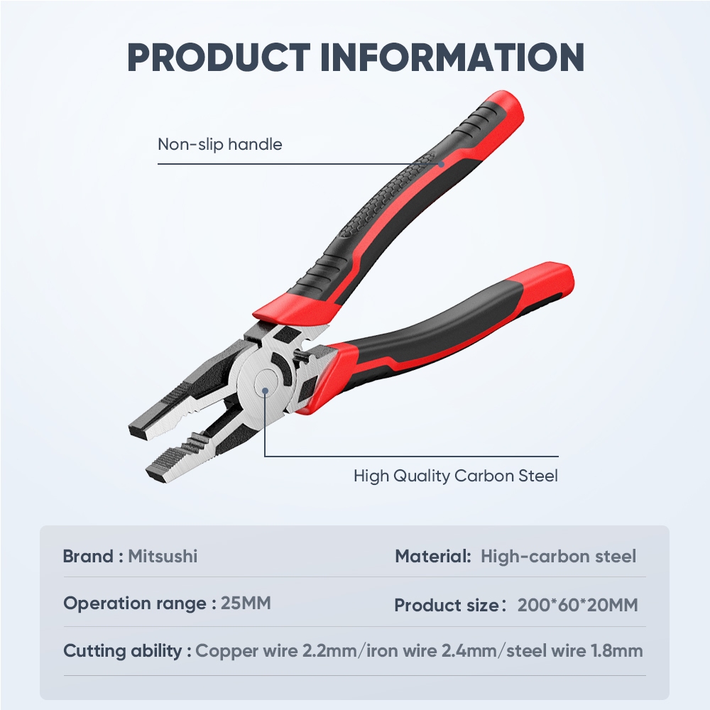 Mitsushi 8-inch 5 in1 Multi-purpose wire pliers diagonal side cutting pliers Wire Cutter Repair Tool
