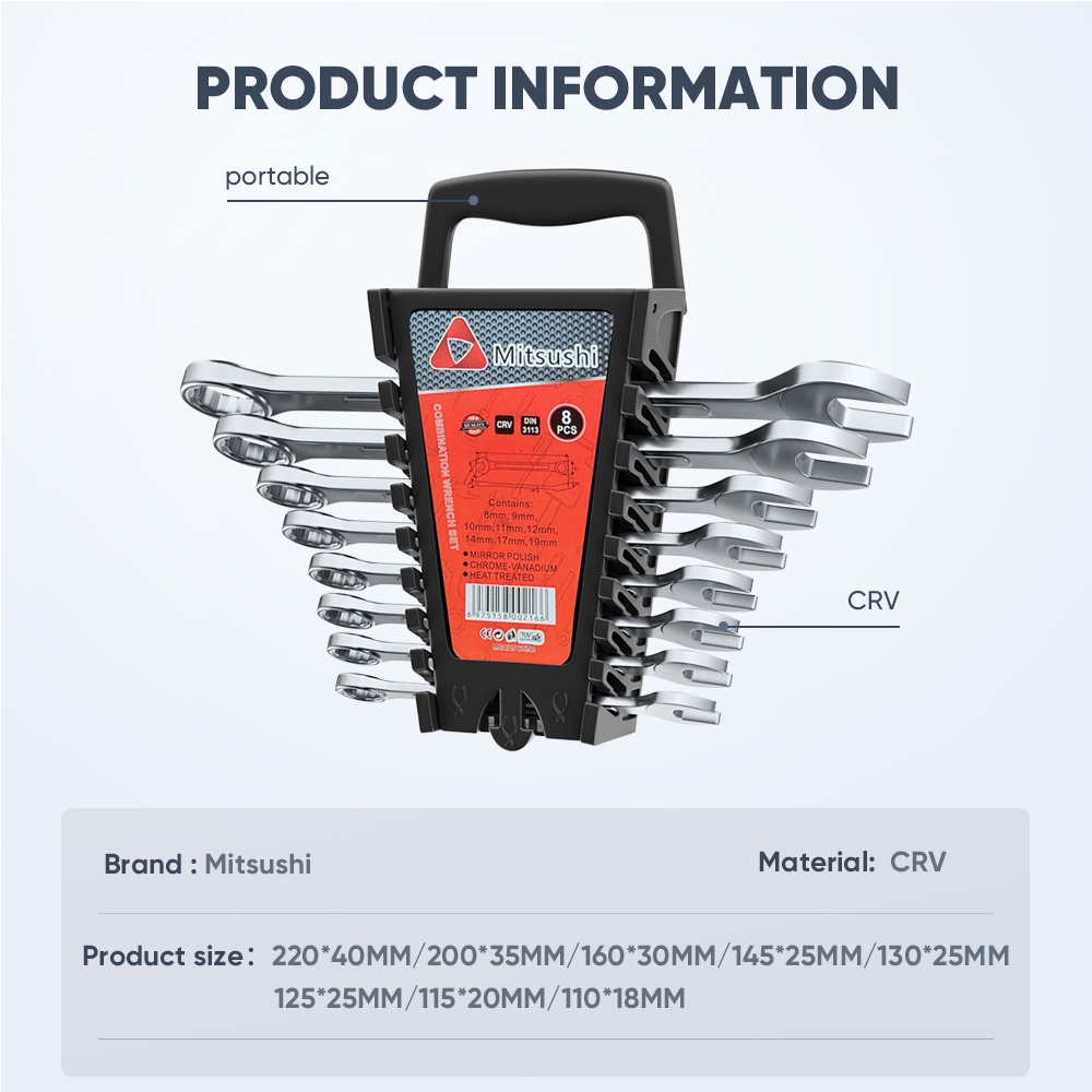 Mitsushi 8pcs Wrench Series Combination Wrench Spanner Set Multi-function Wrenches Set