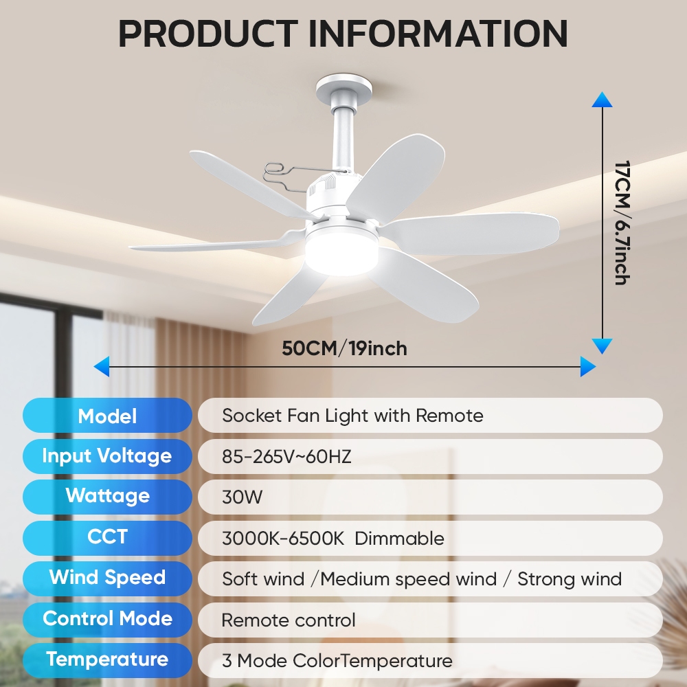 Mitsushi Ceiling fan light 20" with remote control interface bedroom silent fan light chandelier