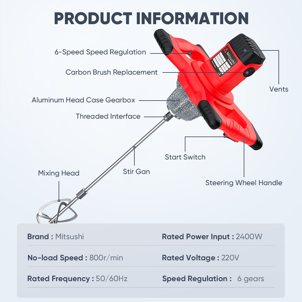 Mitsushi MJBJ8818 220V 2400W Fine Mixer/Multi-functional Electric Mixer for Concrete, Paint, Latex