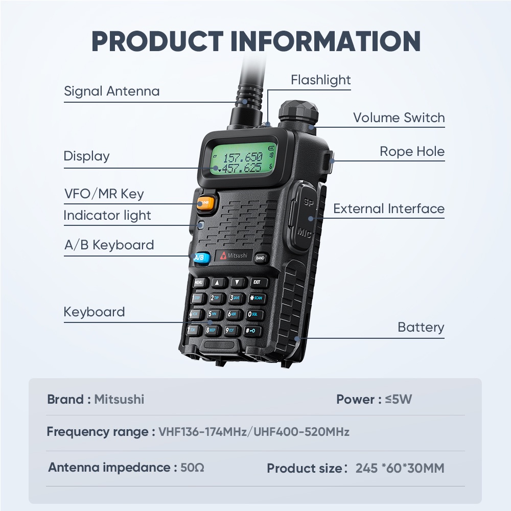Mitsushi UV-5R Dual Band Walkie Talkie 2 Way Radio 1pc NTC Registered Portable Two Way Radio