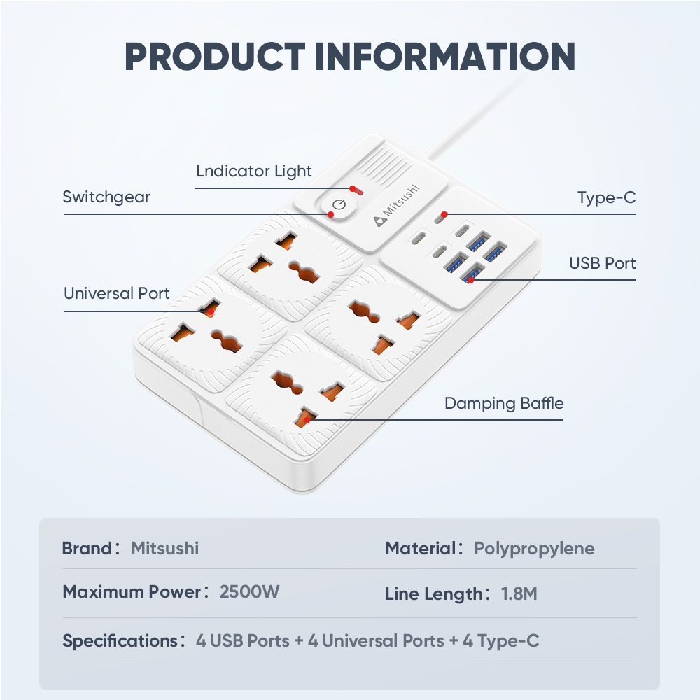 Mitsushi socket surge protector power board suitable for office