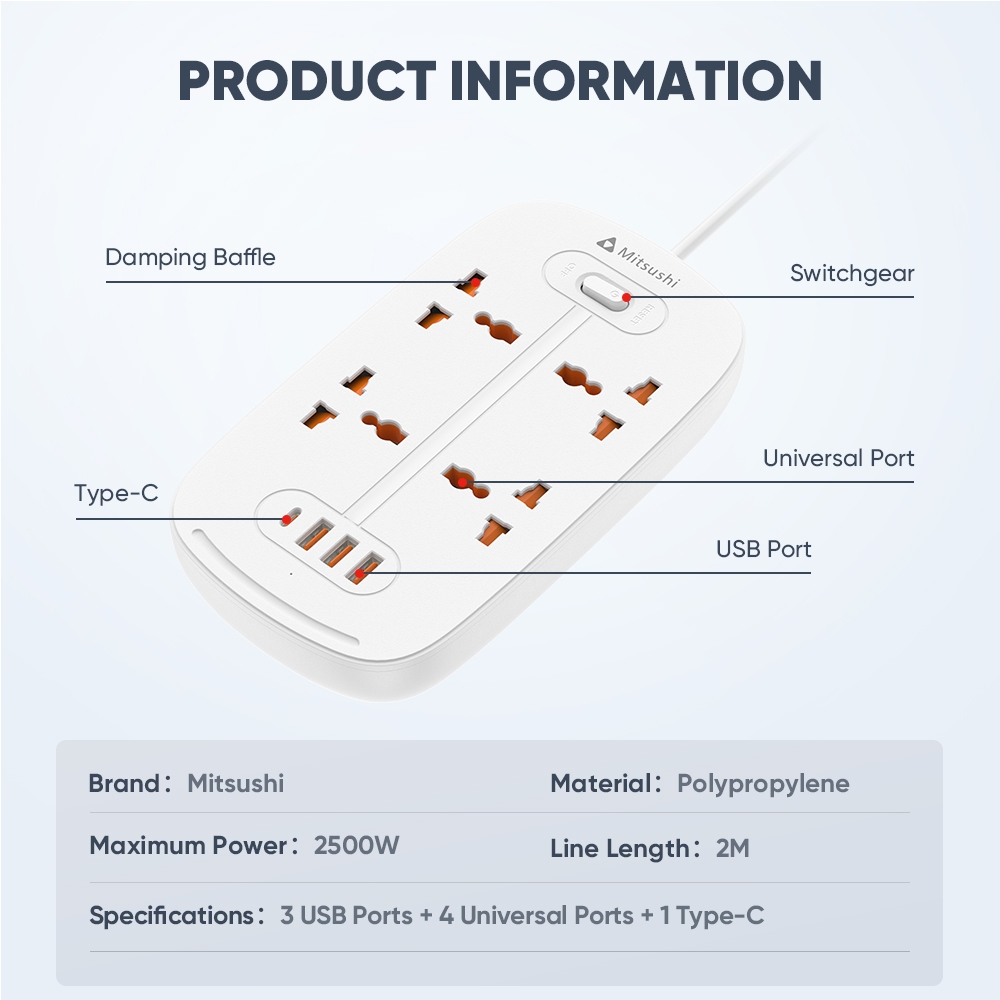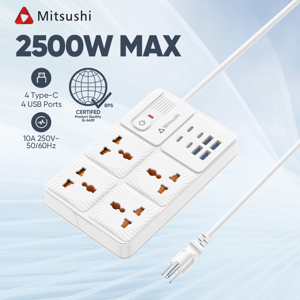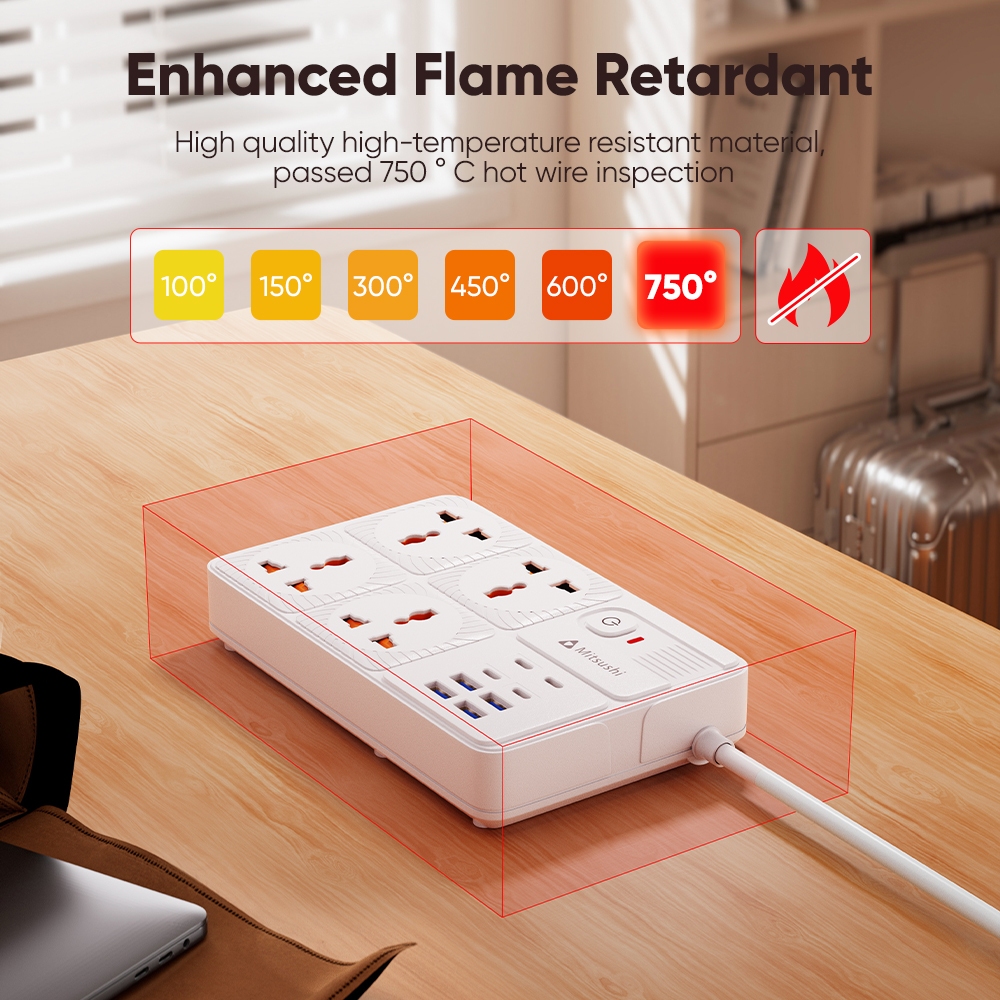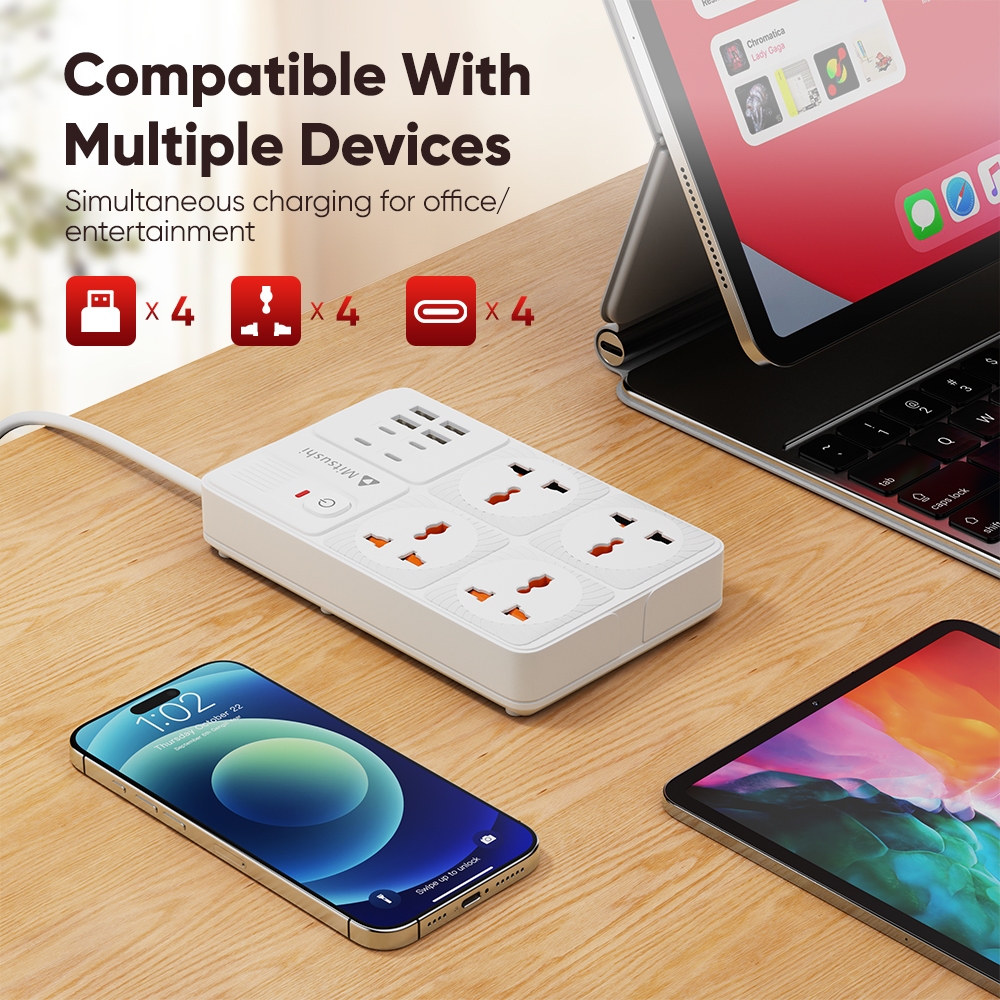 Mitsushi socket surge protector power board with usb/ type-c ports suitable for home office