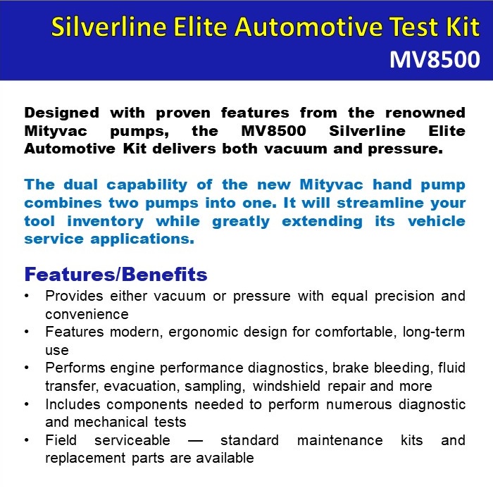 Mityvac Silverline Elite Automotive Test Vacuum Pump Kit MV8500