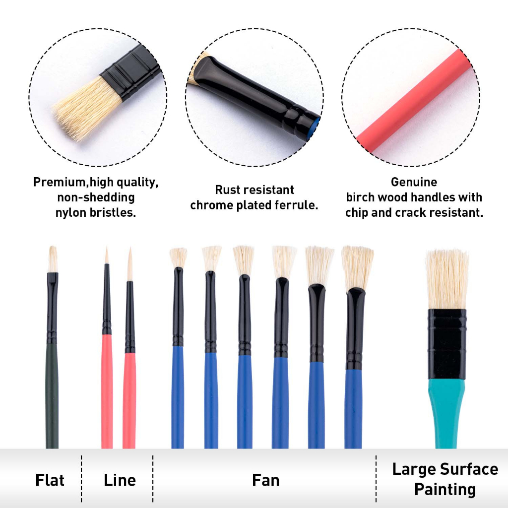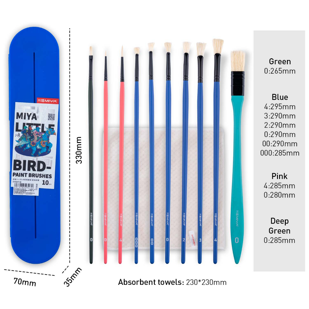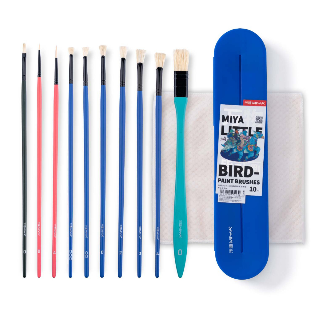 Miya Bird Brush Set 10 pcs with Carrying Case - Bright Orange and Blue Colors Available