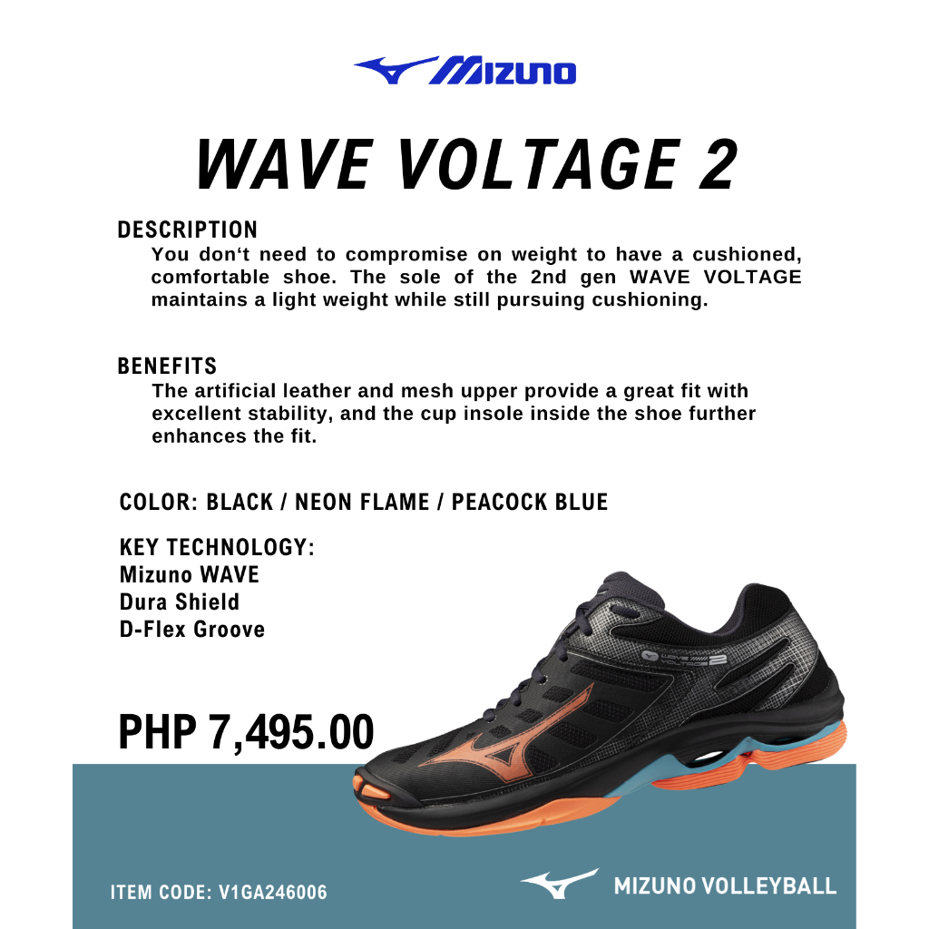 Mizuno Wave Voltage 2 Volleyball Shoes - Black/Neon Flame/Peacock Blue