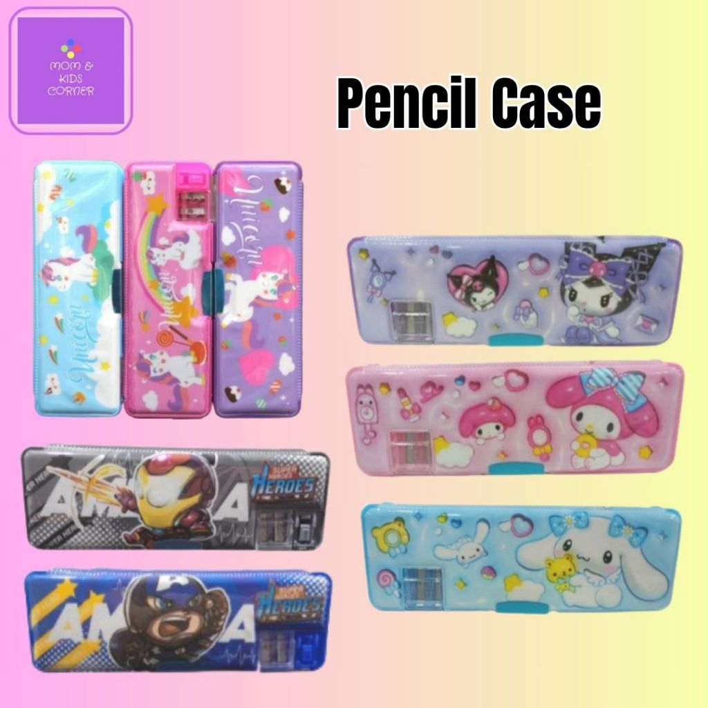 MnKC Double Sided Opening Magnetic Pencil Case for Kids Children Pencil case with sharpener