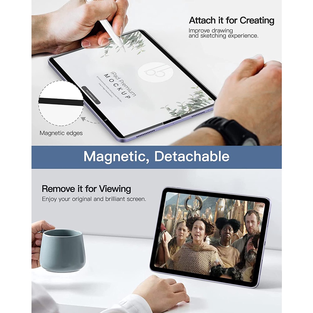 MoKo Magnetic Paper Feeling Screen Protector for iPad Pro 11 2022/2021/2020/2018, iPad Air 5/4 Gen 10.9 2022/2020, Reusable Anti-glare Bubble-Free Film Support Apple Pencil