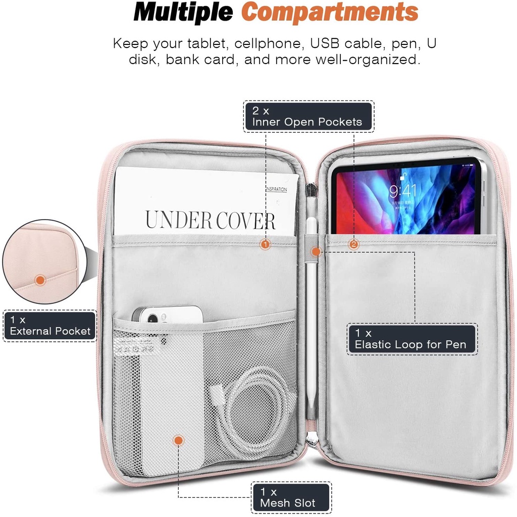 MoKo Protective Sleeve Bag for 9-11 Inch Tablet w/ Slant Pocket For iPad Pro 11 2021/2020/2018, 8th 7th Gen 10.2