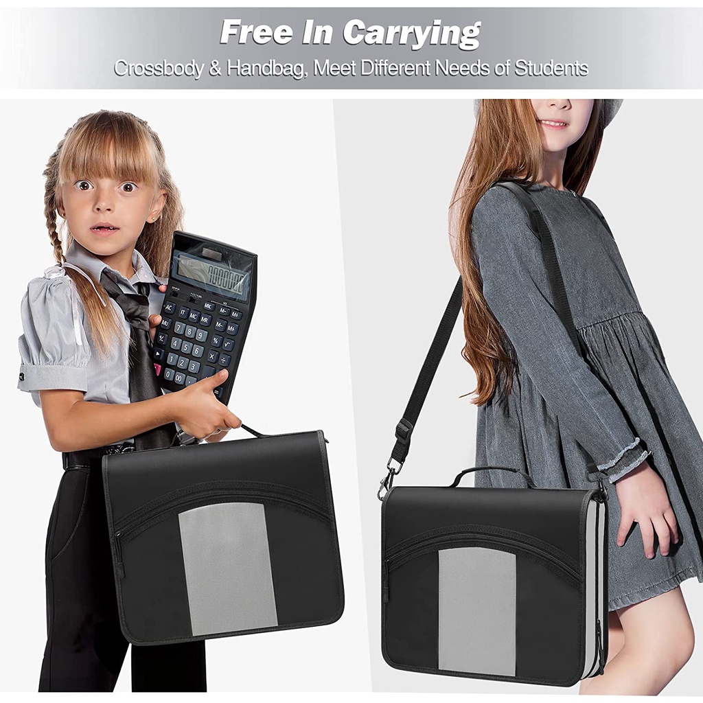 MoKo Zipper Binder, 3 inch 3 Ring Binder with Zipper, 600 Sheet Capacity Multi-Pocket School Binder Organizer, Handle and Shoulder Strap Included