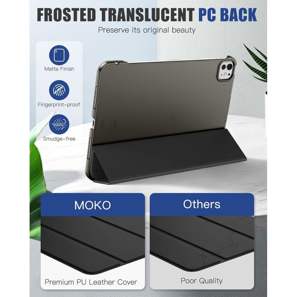MoKo for iPad Pro 13 Inch Case M4 2024 (7th Gen),Slim Stand Case with Hard PC Translucent Back Shell Cover for iPad Pro 2024 Model (A2925/ A2926/A3007), Support Apple Pencil Pro