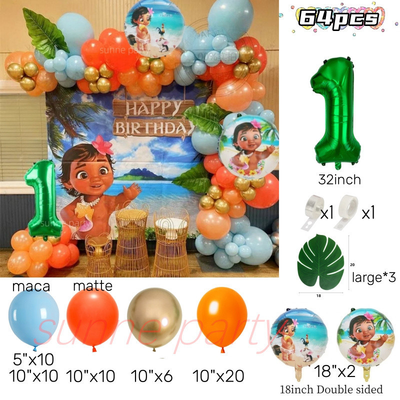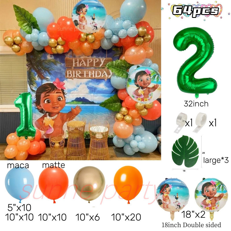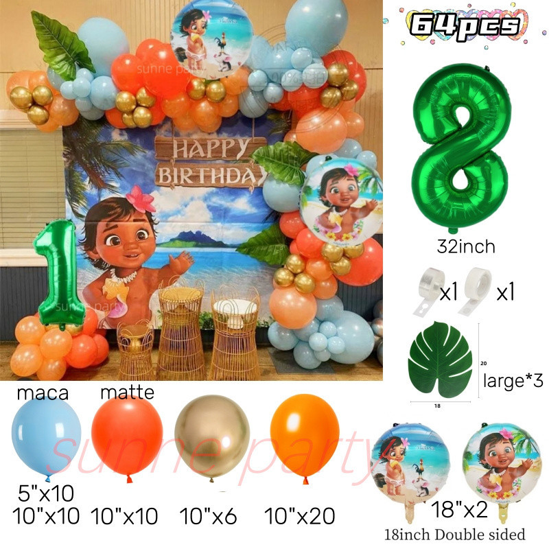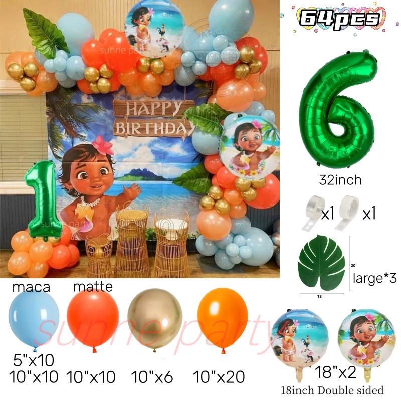 Moana Party Balloons Garland Arch Kit Moana Princess Theme Green Number Foil Ballons Birthday Party