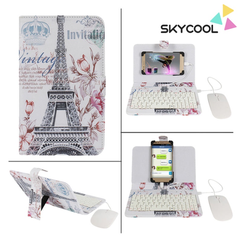 Mobile Phone Keyboard And Mouse Portable Type-C/Micro-Usb Wired Keyboard and Mouse set with Bracket Protective Cover