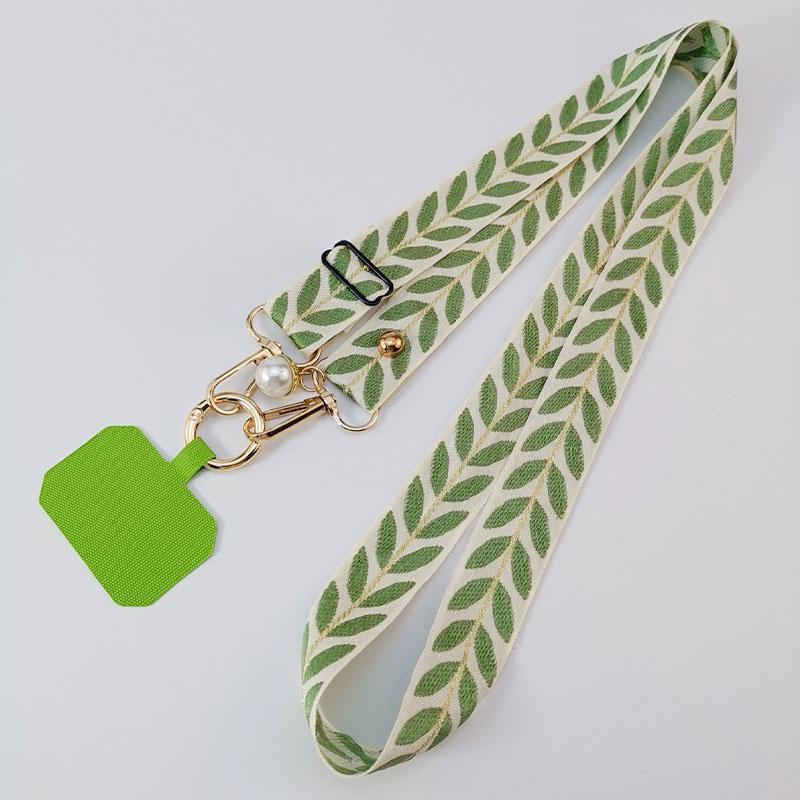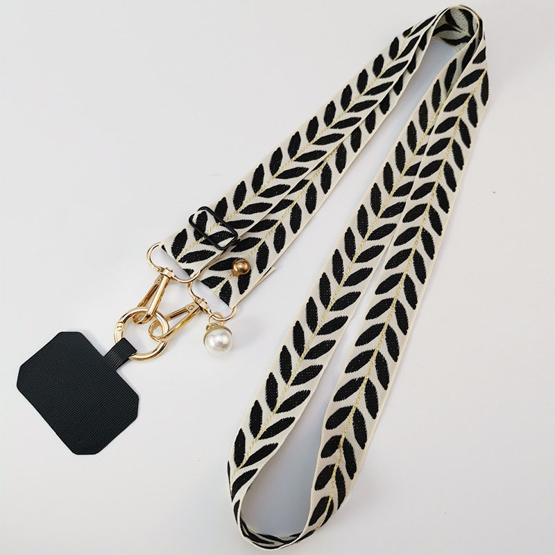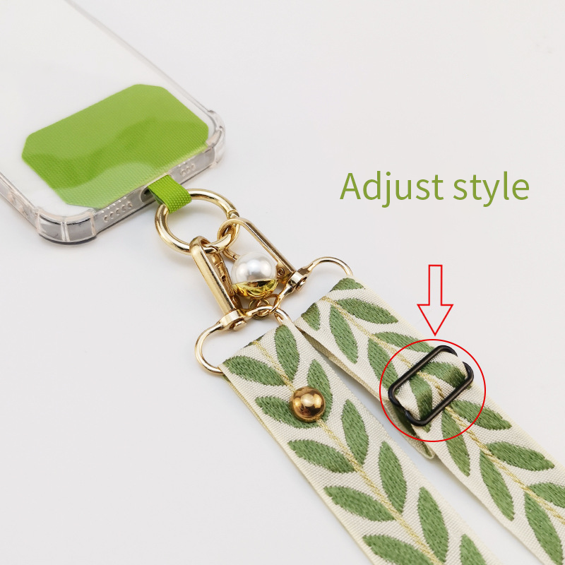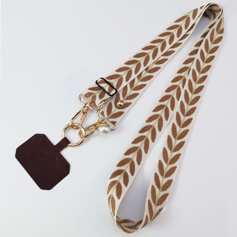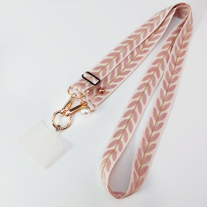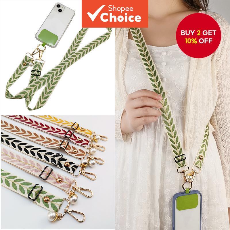 Long Adjustable Phone Shoulder Sling: Crossbody Wide Cloth Lanyard with Pearl Charm Strap & Cellphone Keychain Function