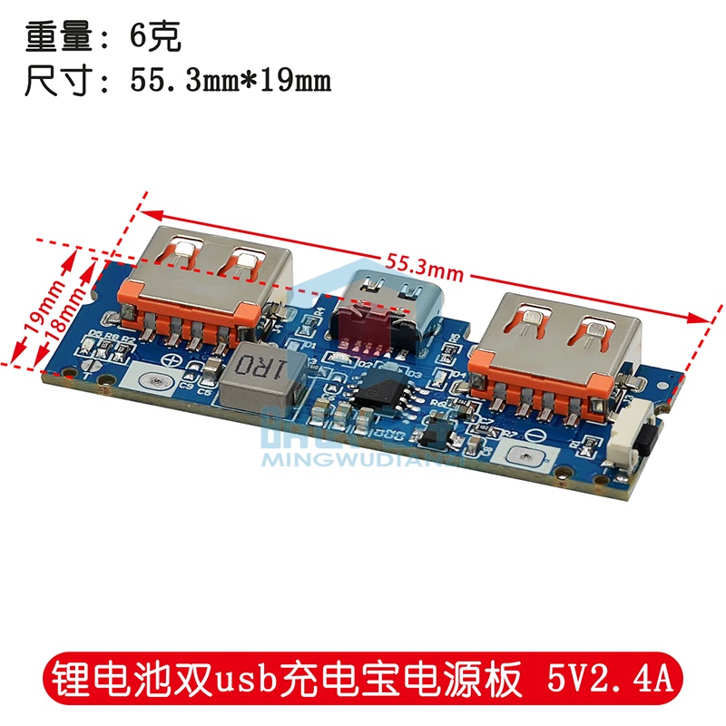 Mobile Power Supply Board for Power Bank Type-c Lithium Battery Dual USB Power Supply Board for Power Bank 5V2.4A