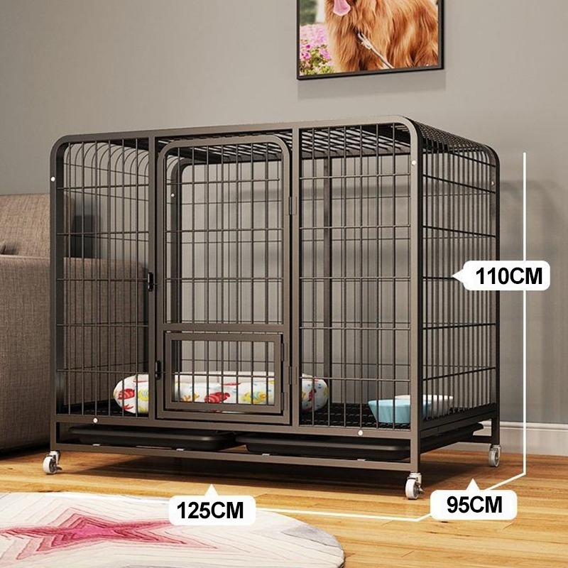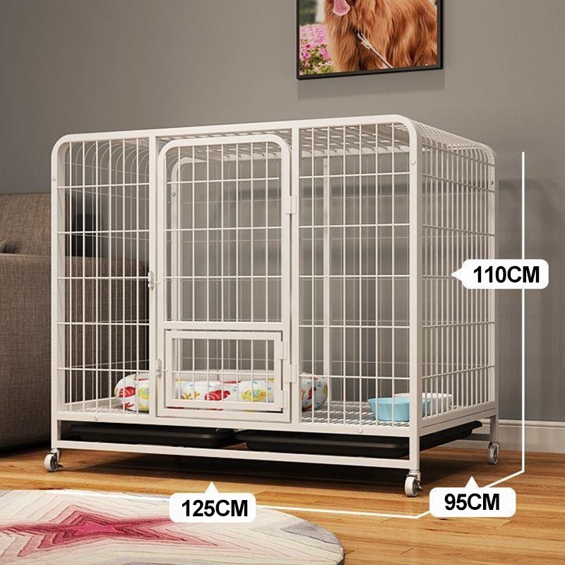 Mobile Square Tube Wire Dog Cage Large Metal Cage With Tray Pet Cage Indoor Dog House