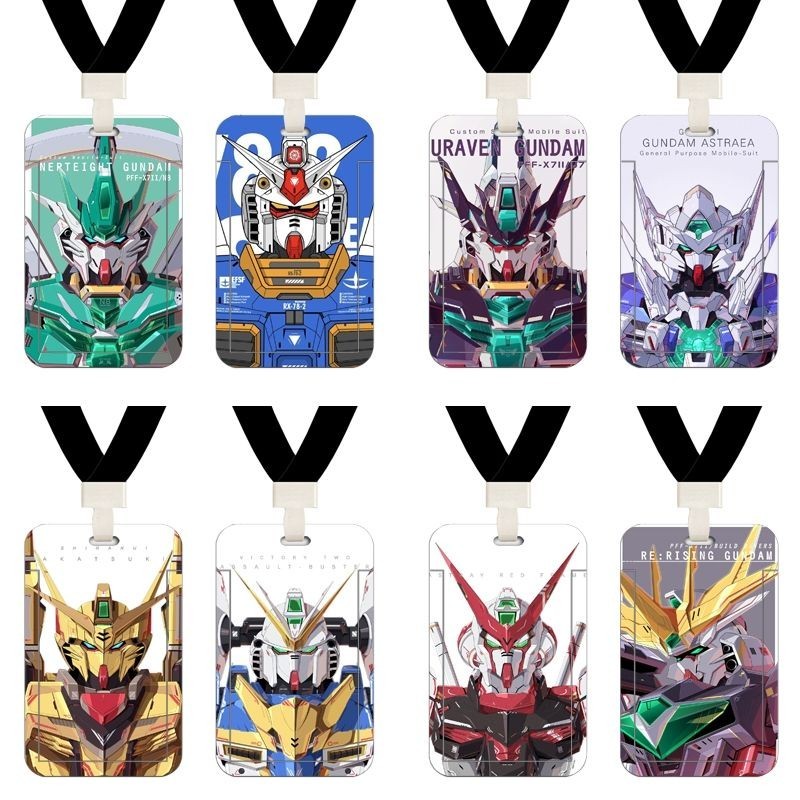 Mobile Suit Gundam Bus Card Protective Case Food Card Student Card Holder with Halter Rope Work Card Holder Campus Card Badge