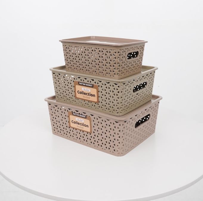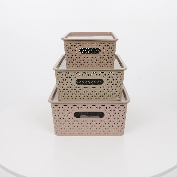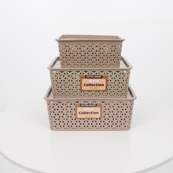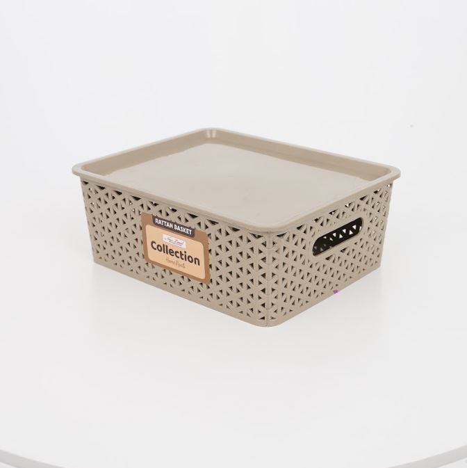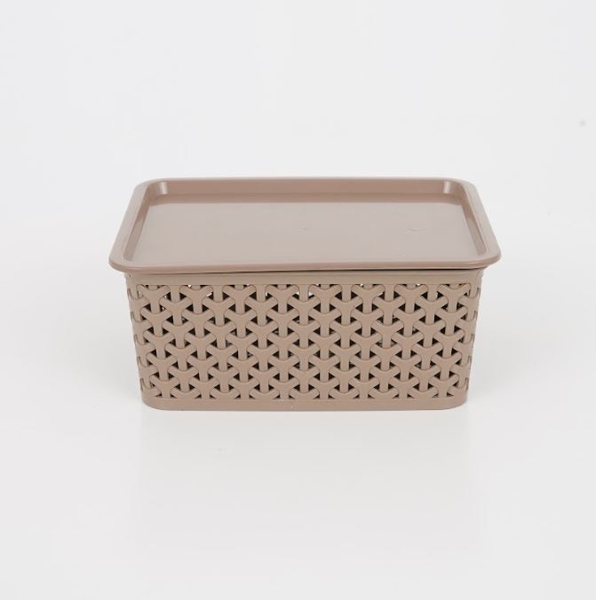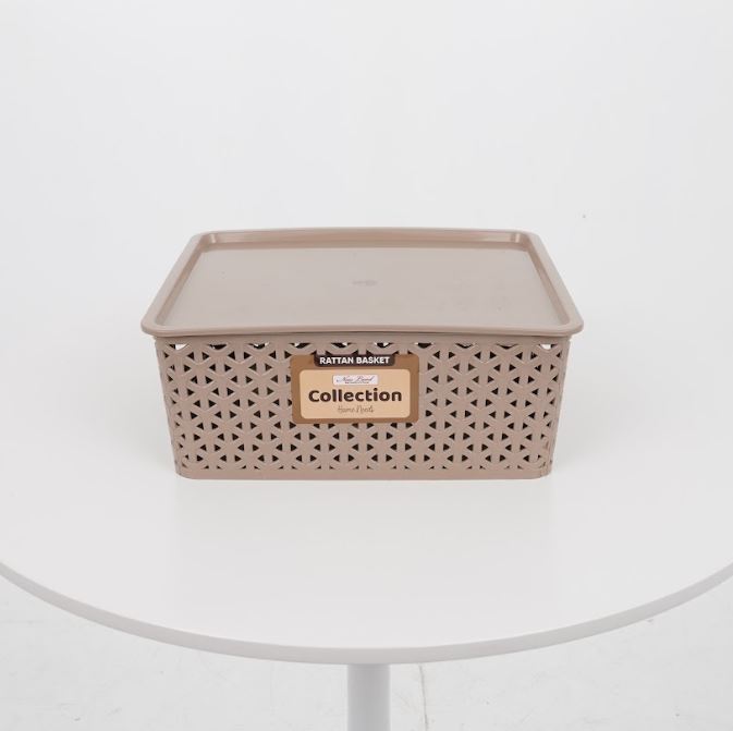 Mocha Collection Rattan Basket Woven Basket Storage Organizer Plastic With Cover