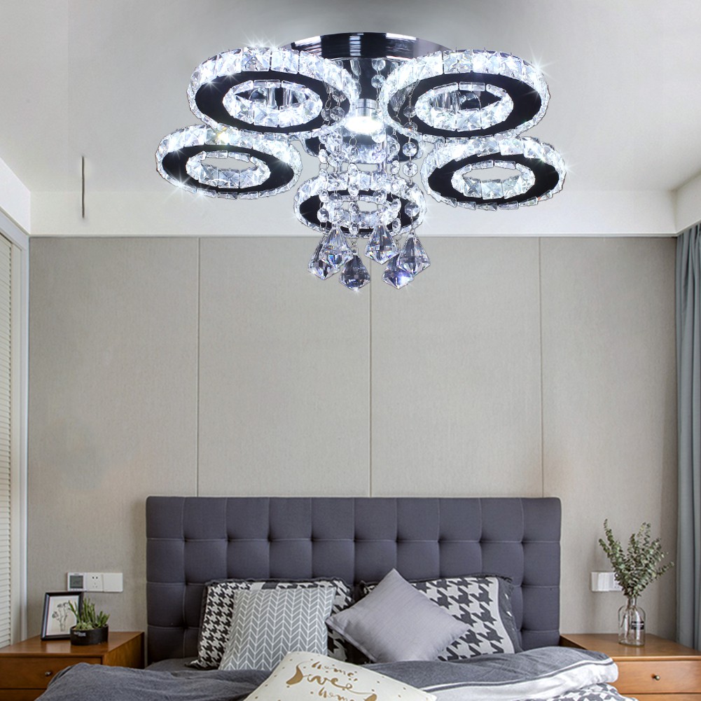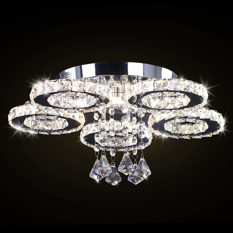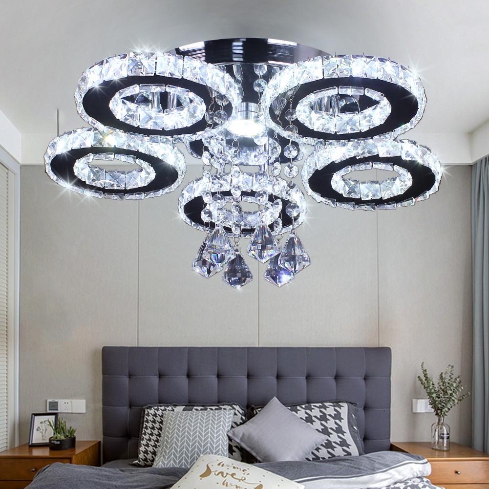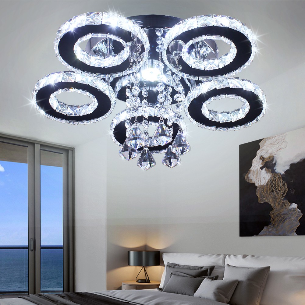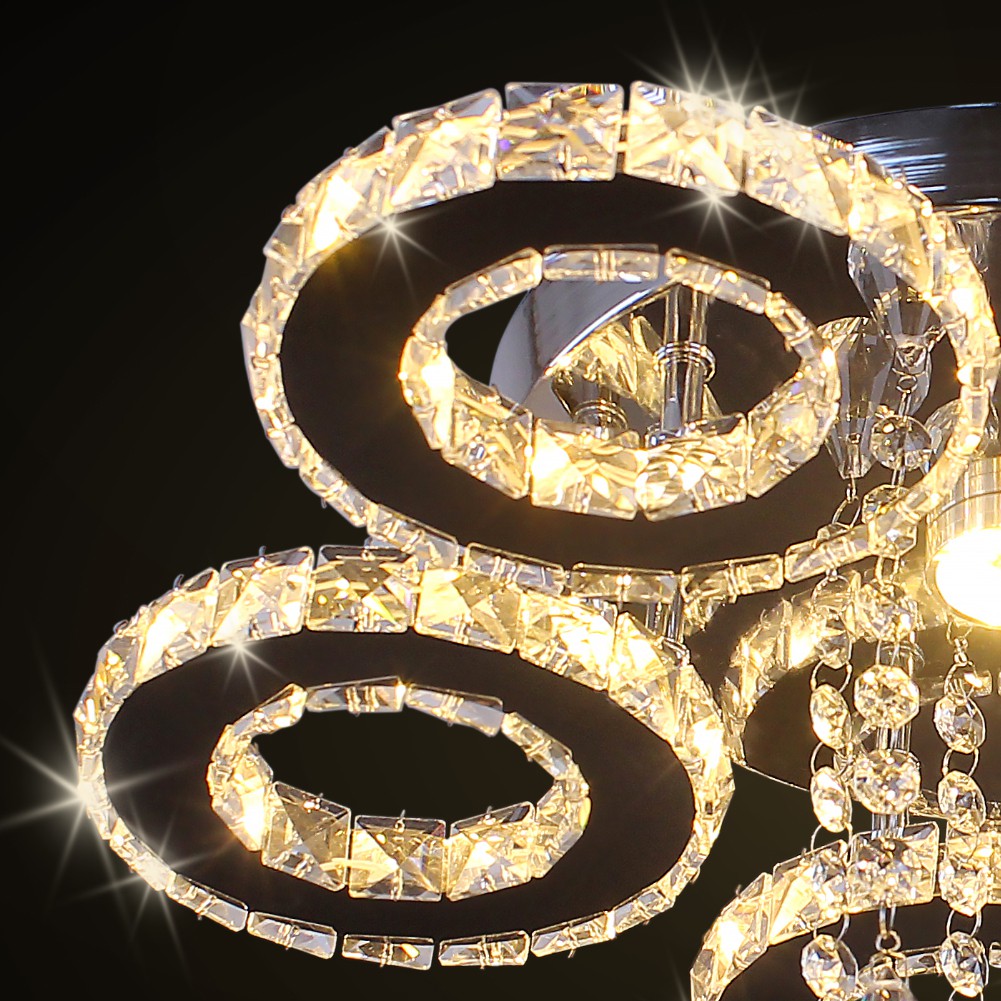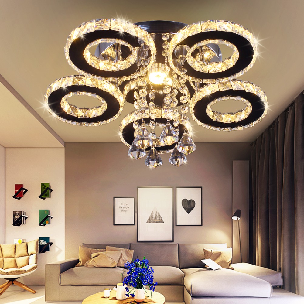 Modern 5 Rings Crystal Ceiling Light Fixtures Round Led Pendant Lights Luxury Living Room Kitchen Bedroom