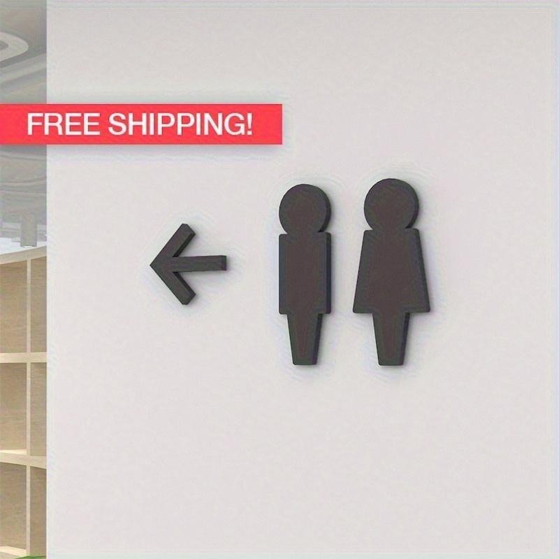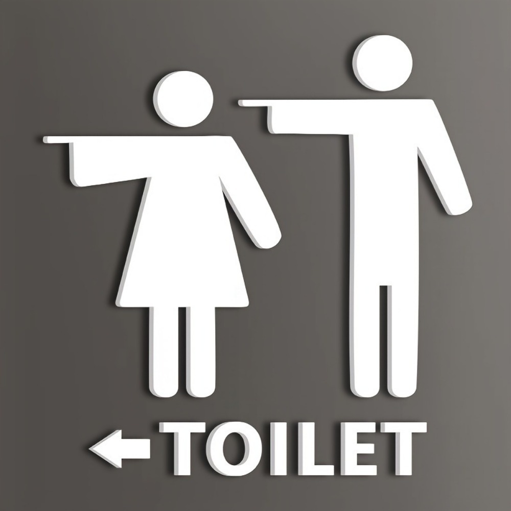 Modern Acrylic Restroom Signs with Gender Symbols & Arrows - Durable Toilet Signage for Office and Commercial Use
