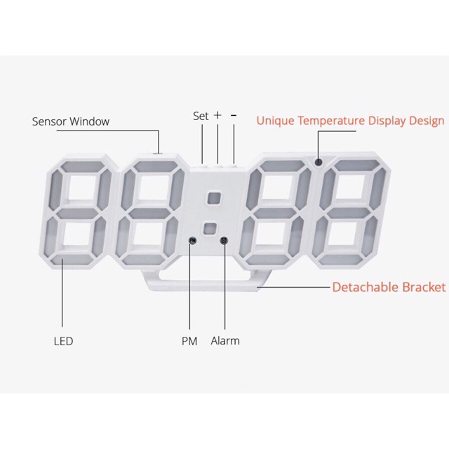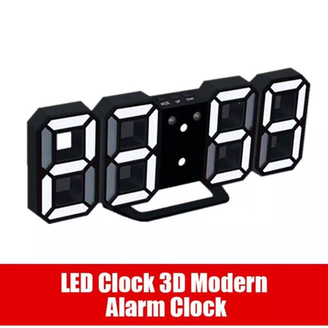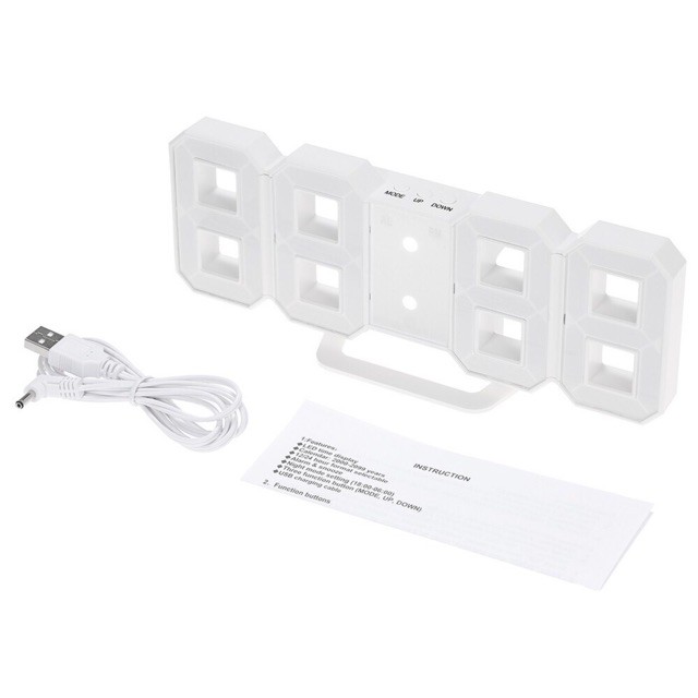 Modern Digital 3D White LED Wall Alarm Clock 12/24hrs Multi-Function