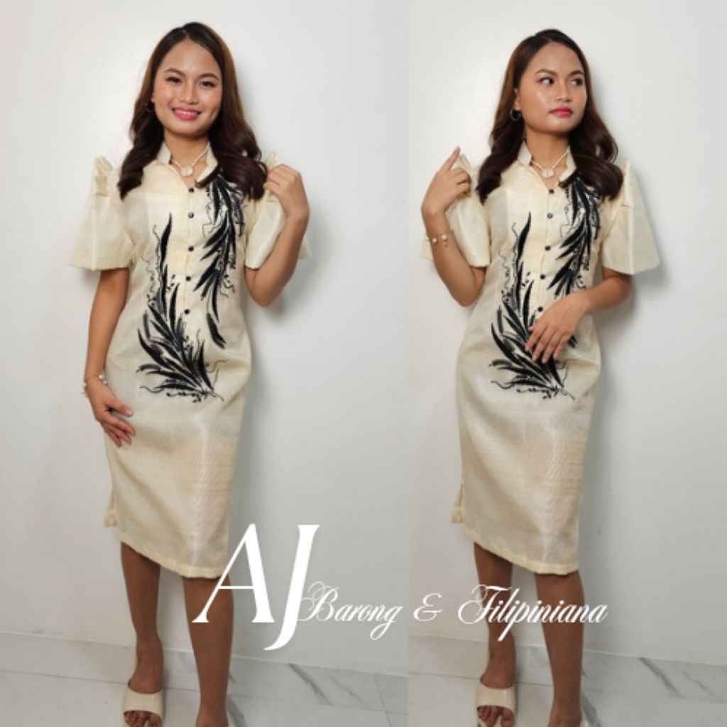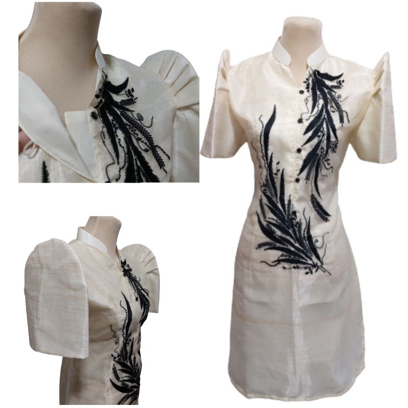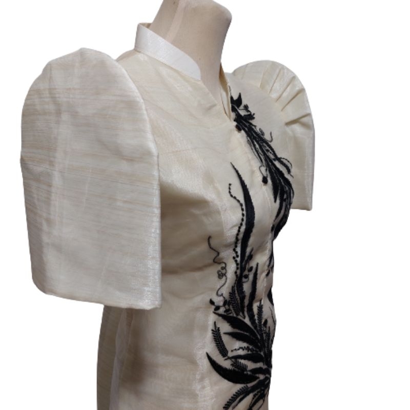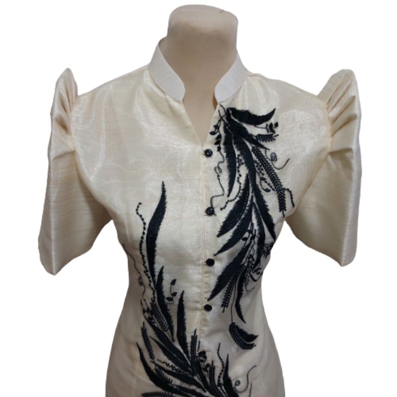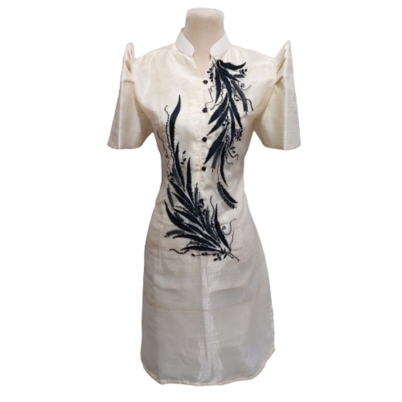 Modern Filipiniana BD 04 ladies dress BARONG Marian vneck black