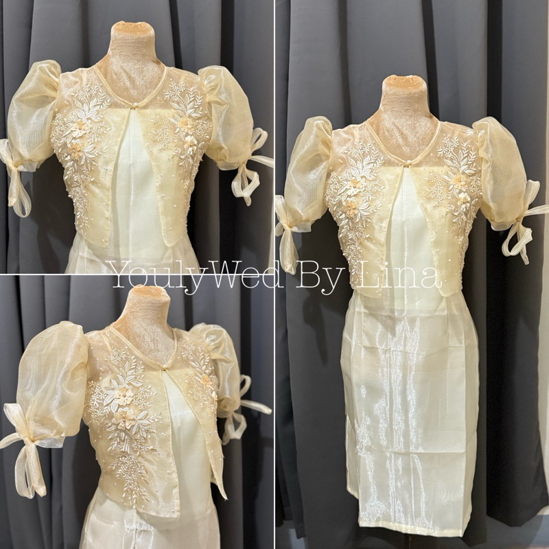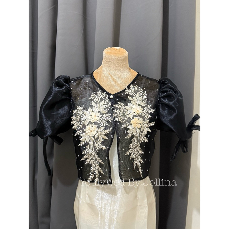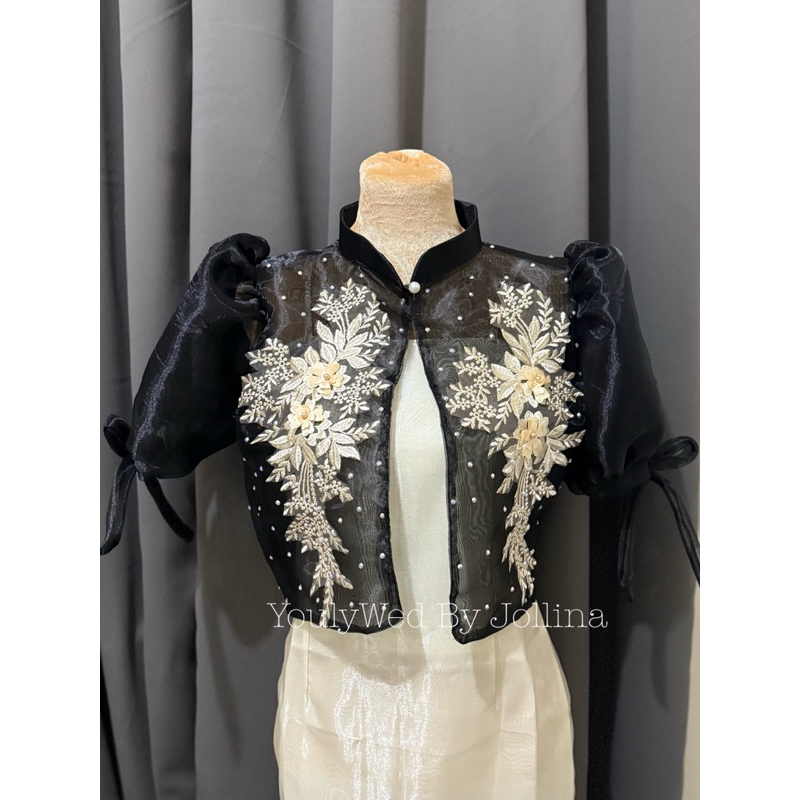Modern Filipiniana Bolero Puff Sleeve Ribbon Collar & Piping