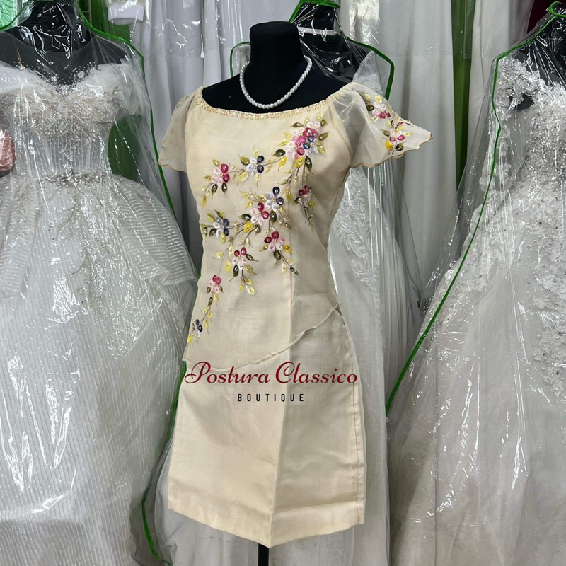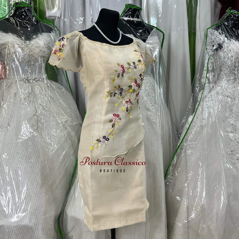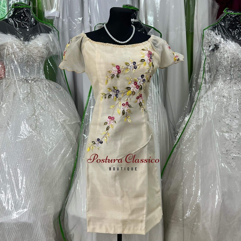Modern Filipiniana Pina Cloth Midi Dress w/ Hand Painting Design