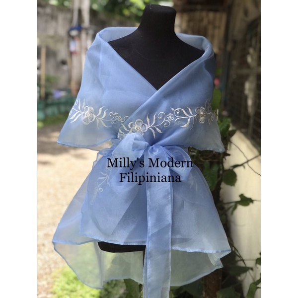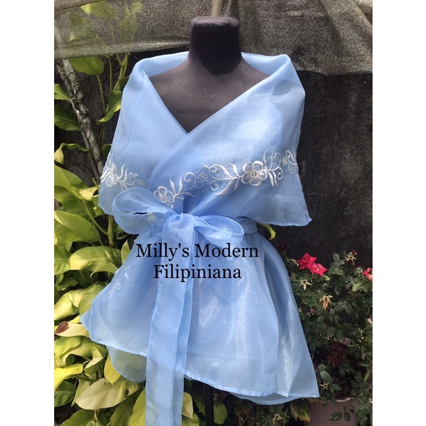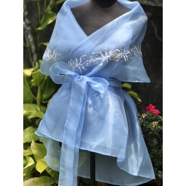 Modern Filipiniana Wrap around / Powder Blue Embro
