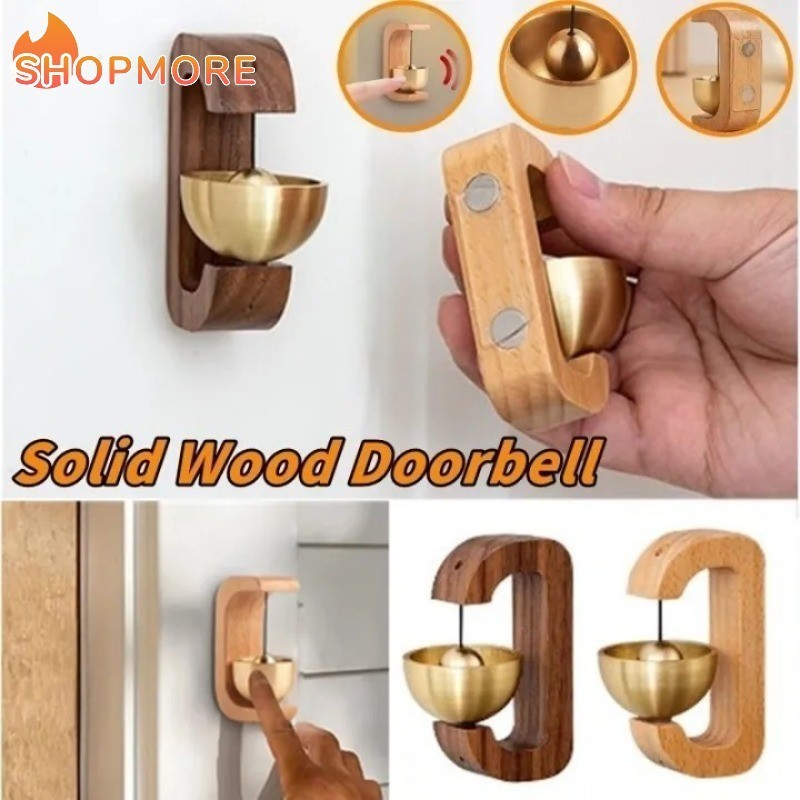 Modern Geometric Wood Doorbell with Magnet - Door Window Mounted Copper Bell with Pleasant Sound Home Decorative Doorbells