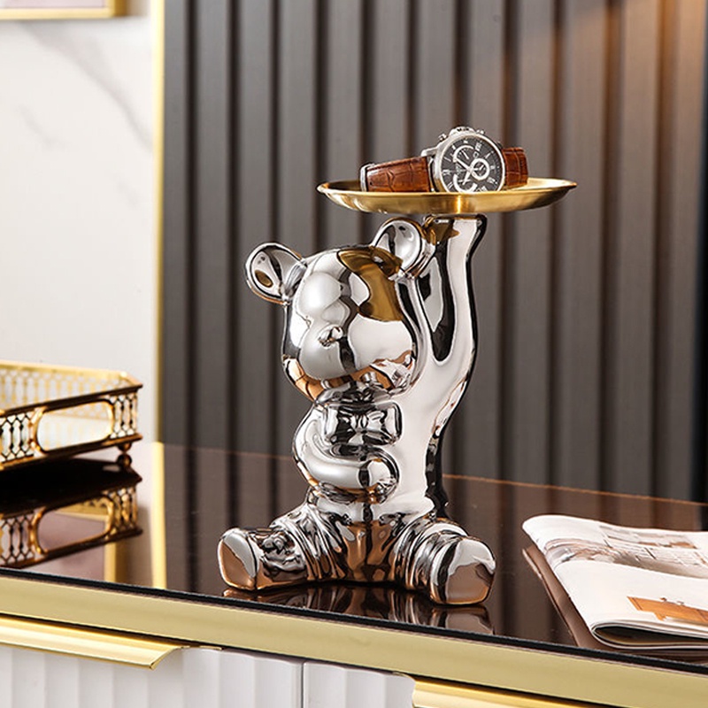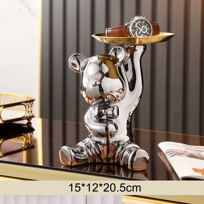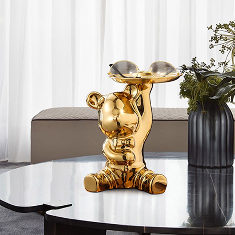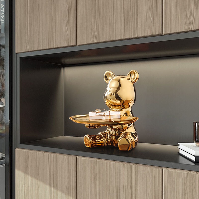 Modern Light Luxury Key Storage Home Decor Entrance Decoration Doorway Shoe Cabinet Tray Creative Golden Ceramic Piggy Bank
