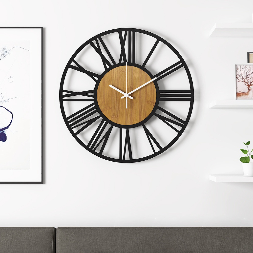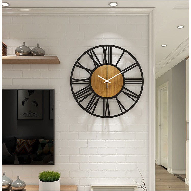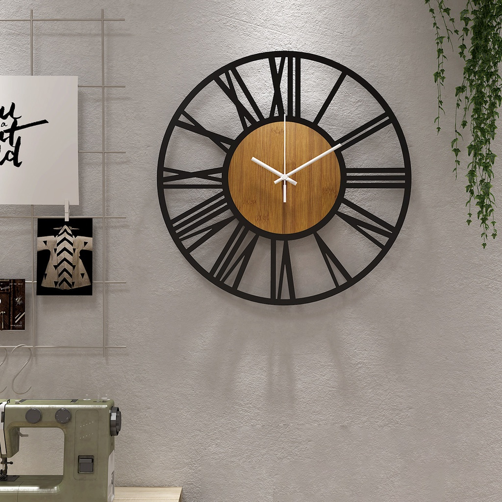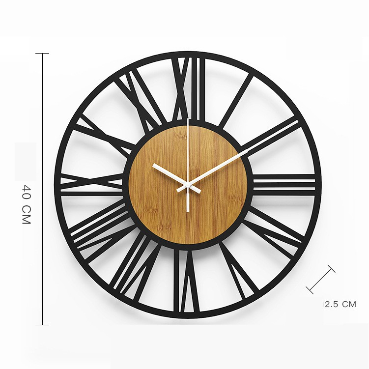 Modern Minimalist Creative Iron Wood Roman Wall Clock 16 Inch Living Room Iron Decorative Wall Clock